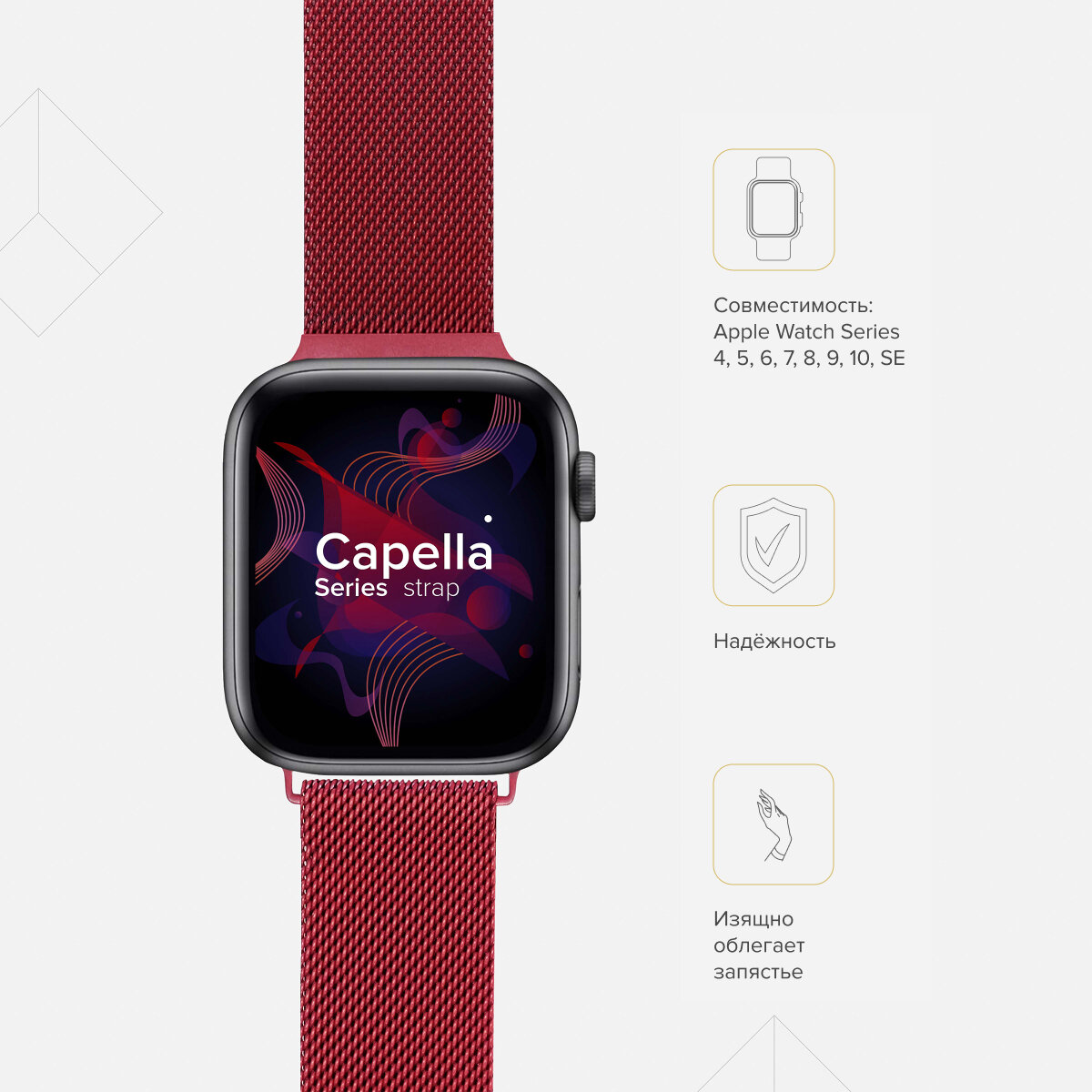 СохранитьРемешок из нержавеющей стали для Apple Watch 38/40/41 mm LYAMBDA CAPELLA DS-APM02-40-GS Gules интересное: