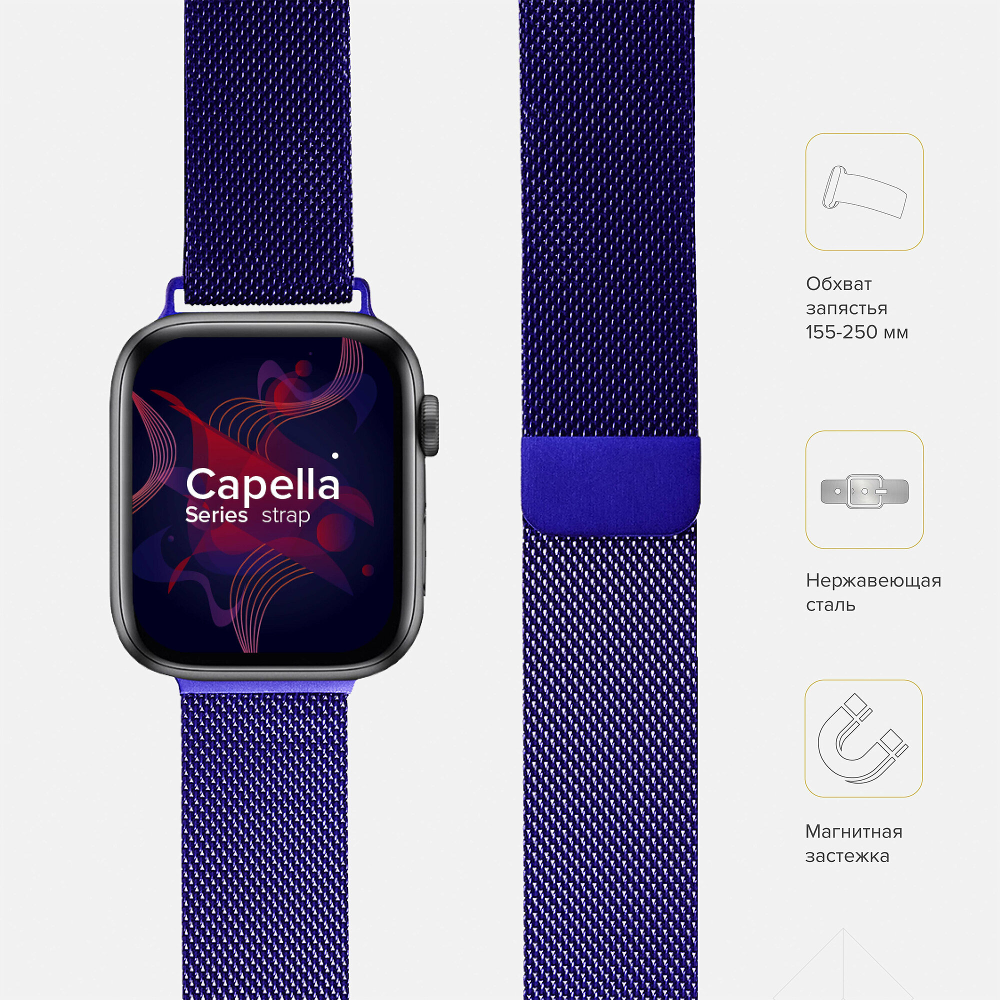 Lyambda Ремешок из нержавеющей стали Capella для Apple Watch 38/40 mm, blue