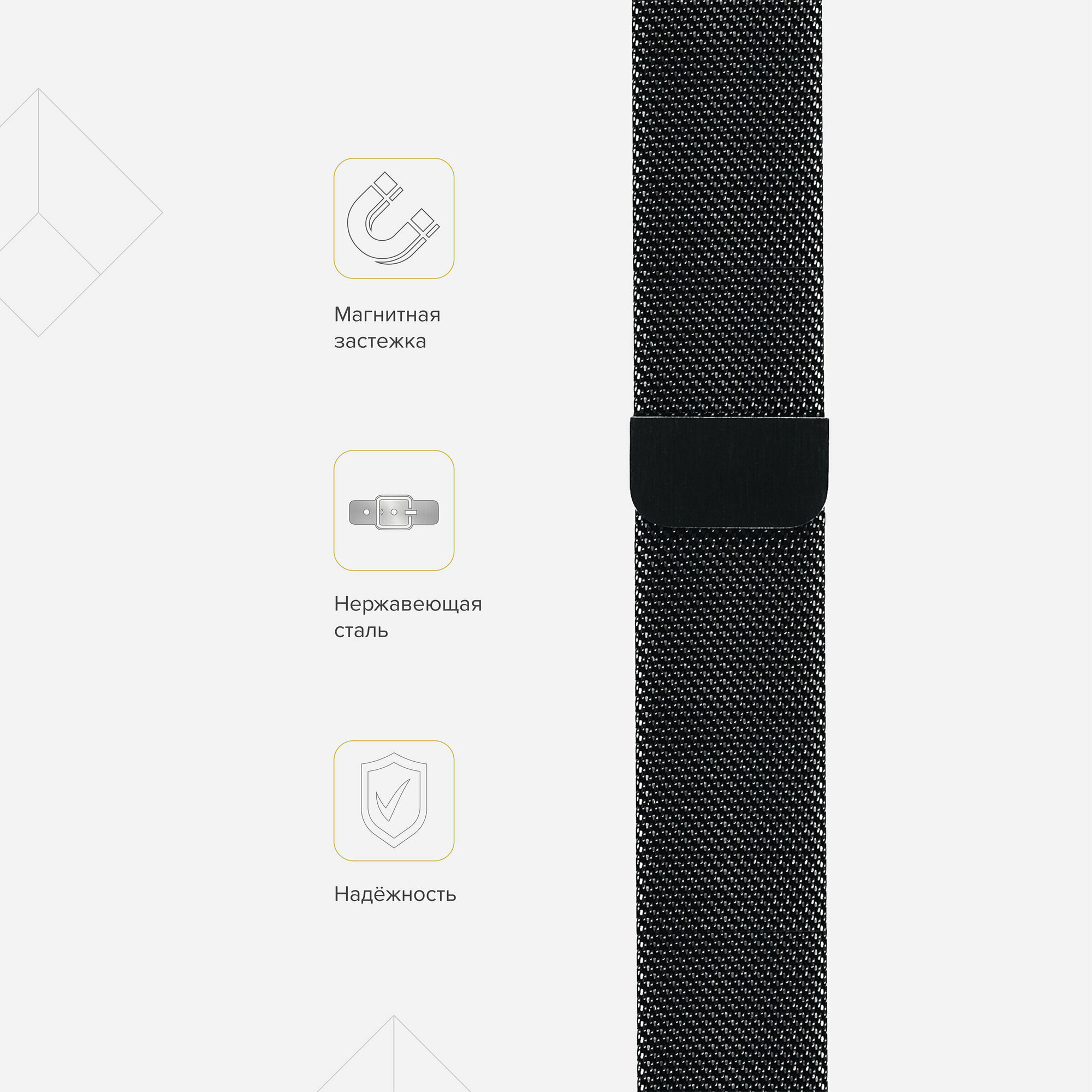 | Плюсы: | Классный ремешок. Не требует инструментов для установки. Магнит хорошо держит выбранную длину. Легко расстёгивается и снимается с руки, проще, чем классические ремешки. Отлично подошёл для Samsung Galaxy Watch 4 46". Беспроводной зарядке не мешает, т.к. один конец ремешка можно полностью вытащить из крепления. |