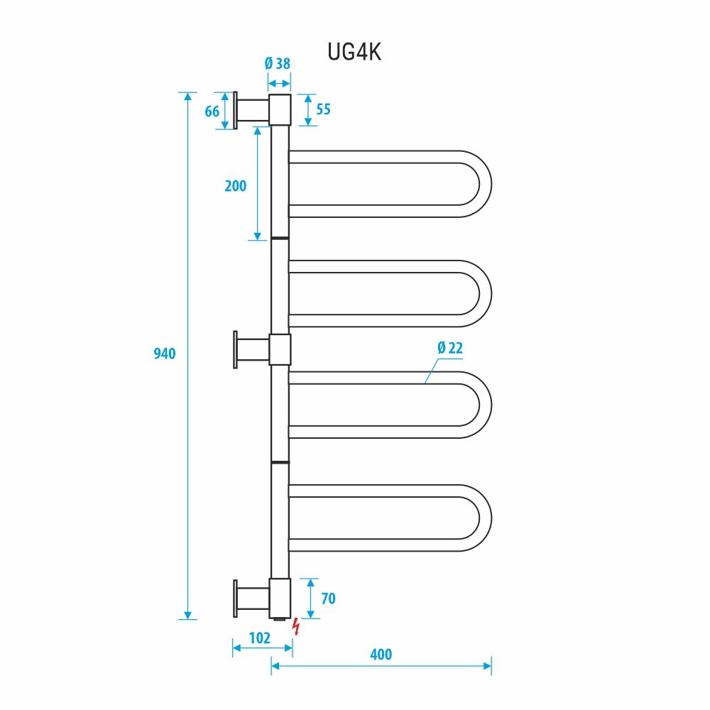 Электрический полотенцесушитель Energy U - G4K поворотный, цвет хром, скрытое/наружное подключение