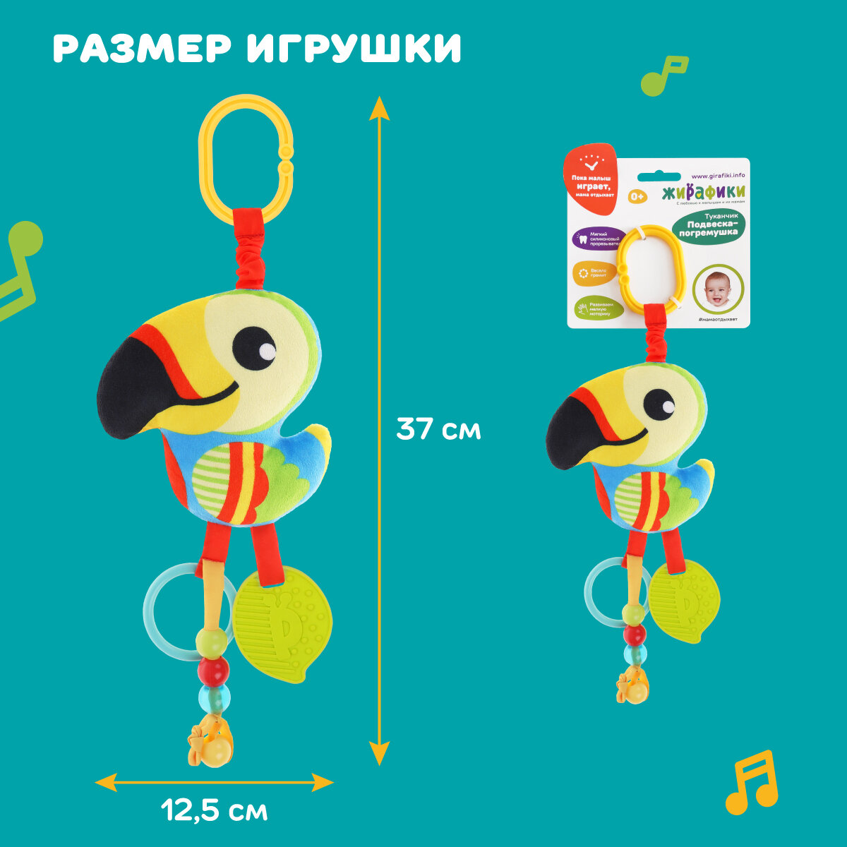СохранитьИгрушка подвеска в кроватку, в коляску, в автокресло, погремушка Туканчик интересное: