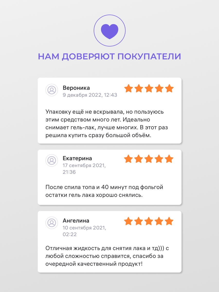 | Плюсы: | Отличное средство для снятия гель-лака. Отлично работает. Покупаю не первый год. Для меня №1 |
