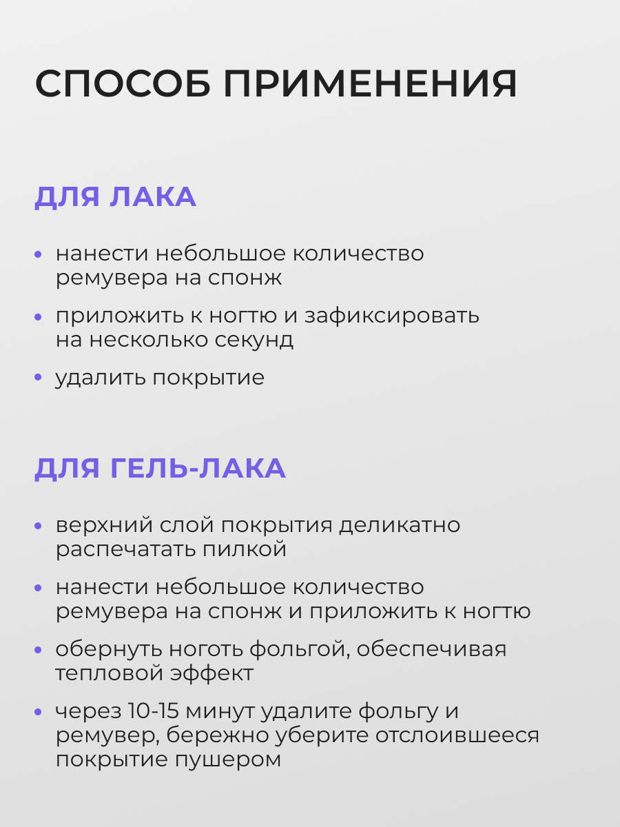 | Для снятия гель-лака | есть |
