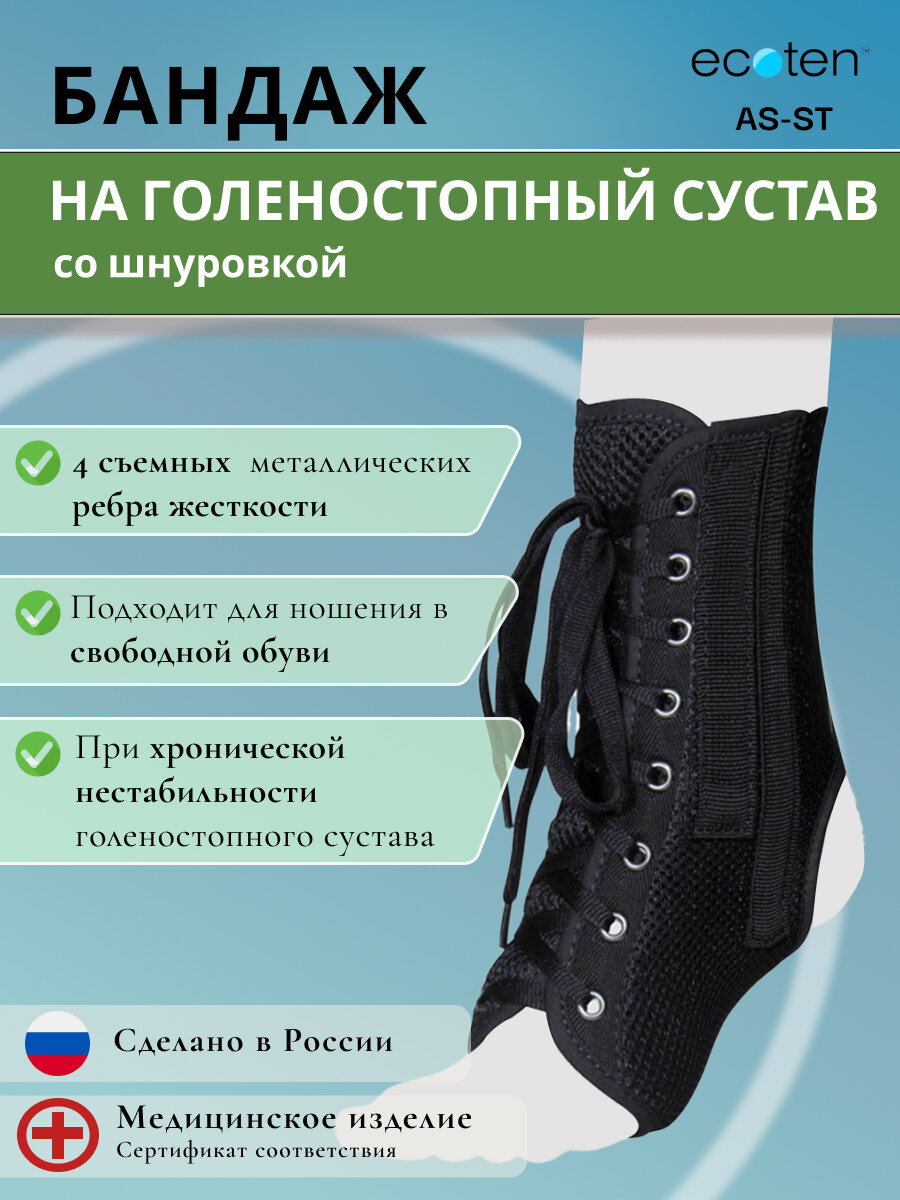 СохранитьБандаж на голеностопный сустав со шнуровкой и ребрами Экотен AS-ST, размер S интересное:
