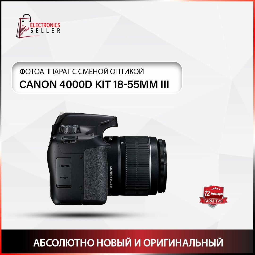 Фотоаппарат Canon EOS 4000D Kit EF-S 18-55mm f/3.5-5.6 DC III, черный