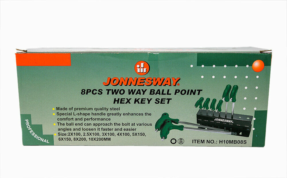 H10MB08S JONNESWAY Комплект угловых шестигранников двусторонних с шаром 2-10мм , 8 предметов