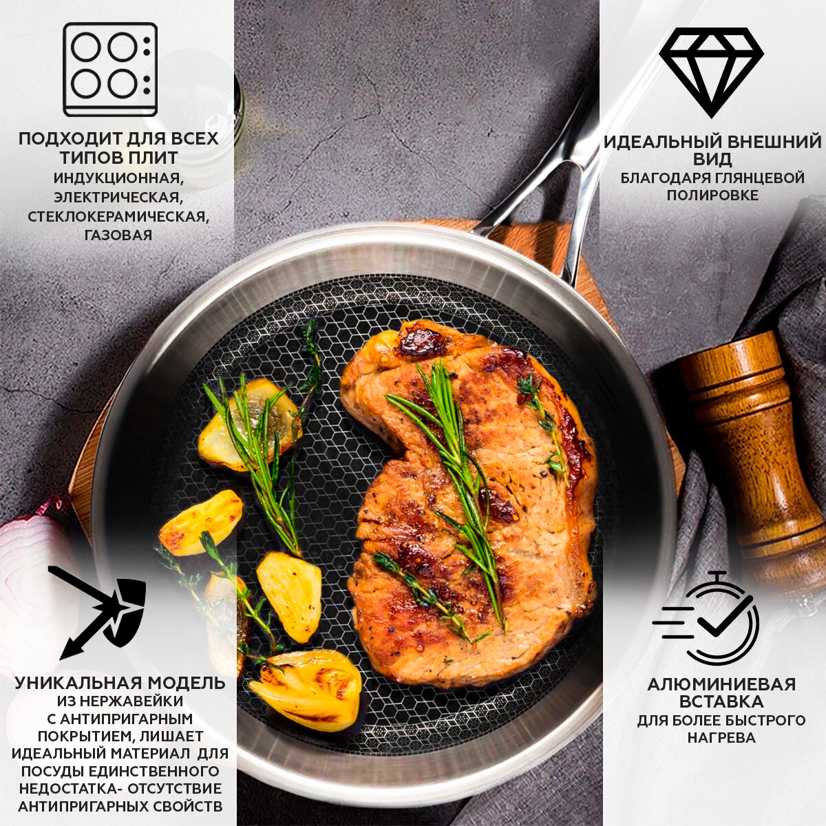 Сковорода из нержавеющей стали Gipfel Melania 0391 28 см черный/стальной интересное:
