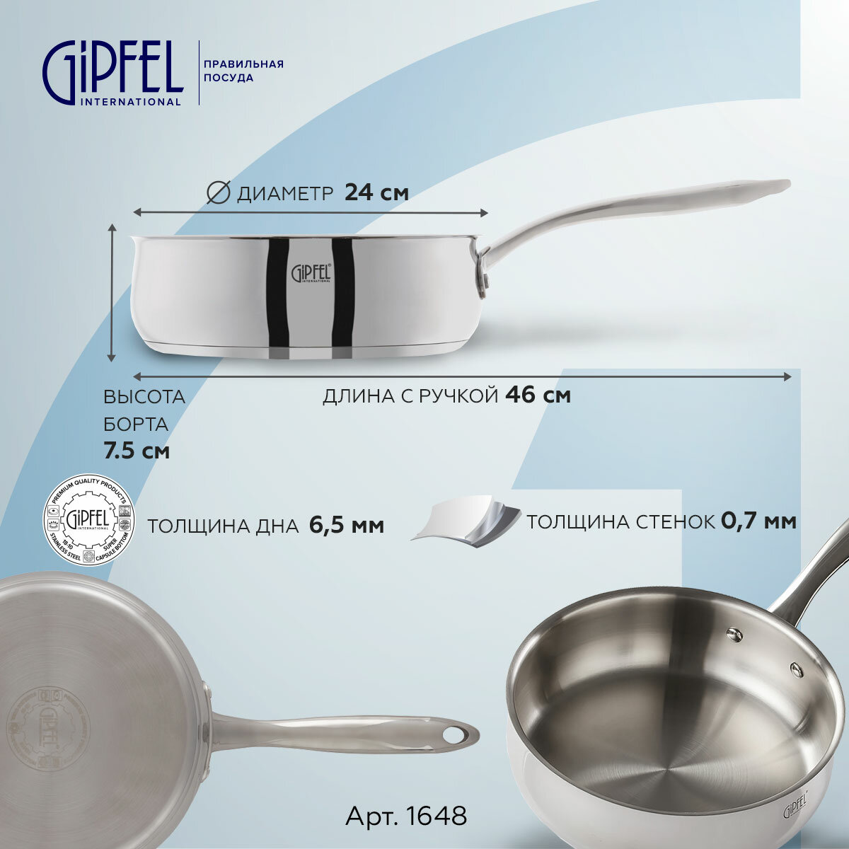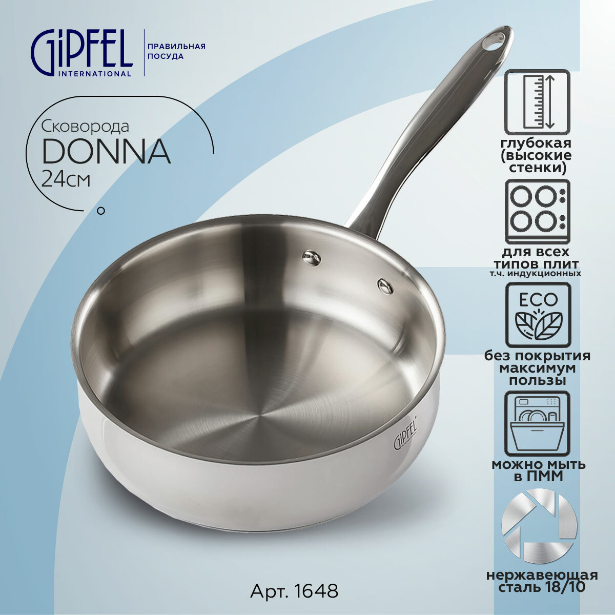 Сковорода из нержавеющей стали Gipfel Donna 1648 24 см стальной интересное: