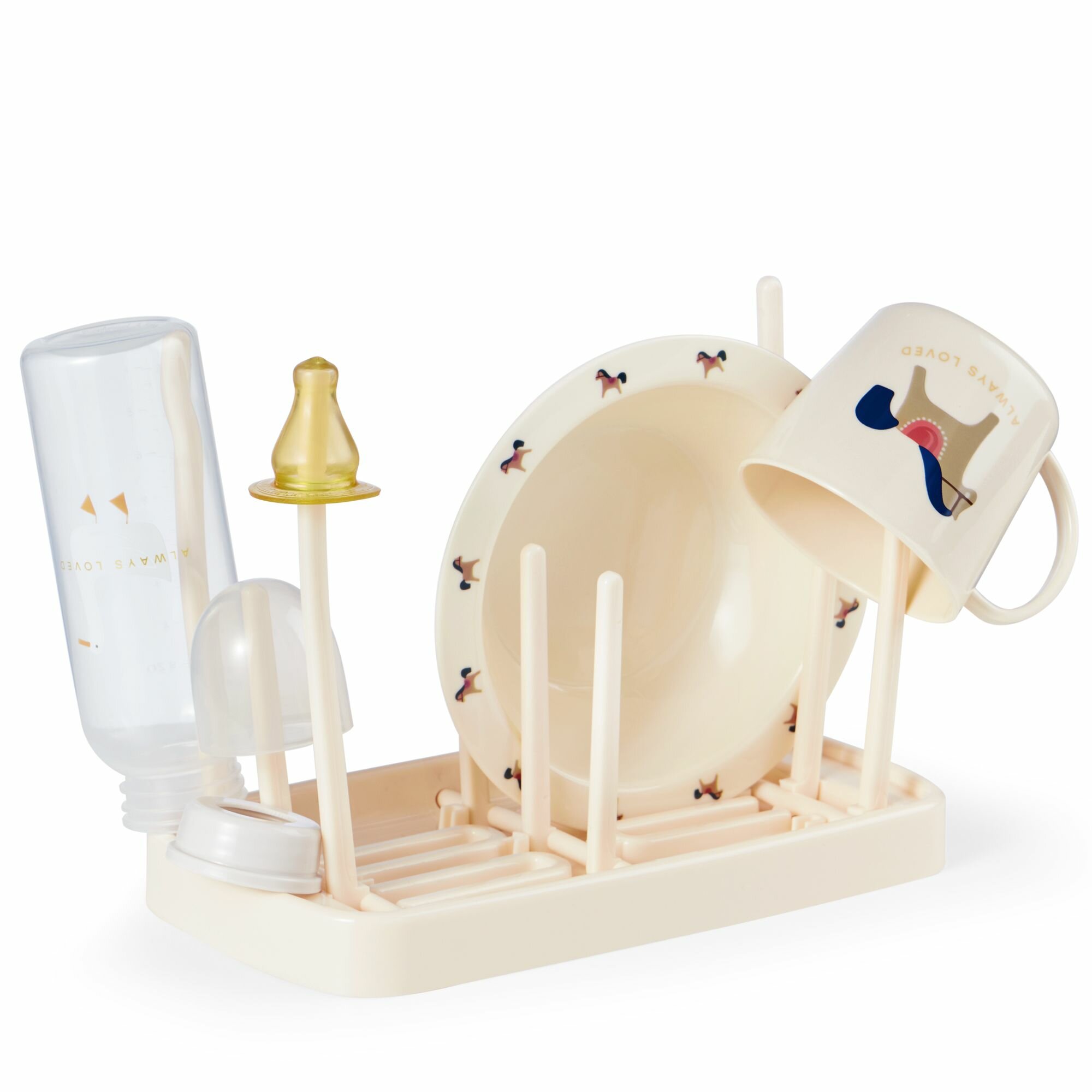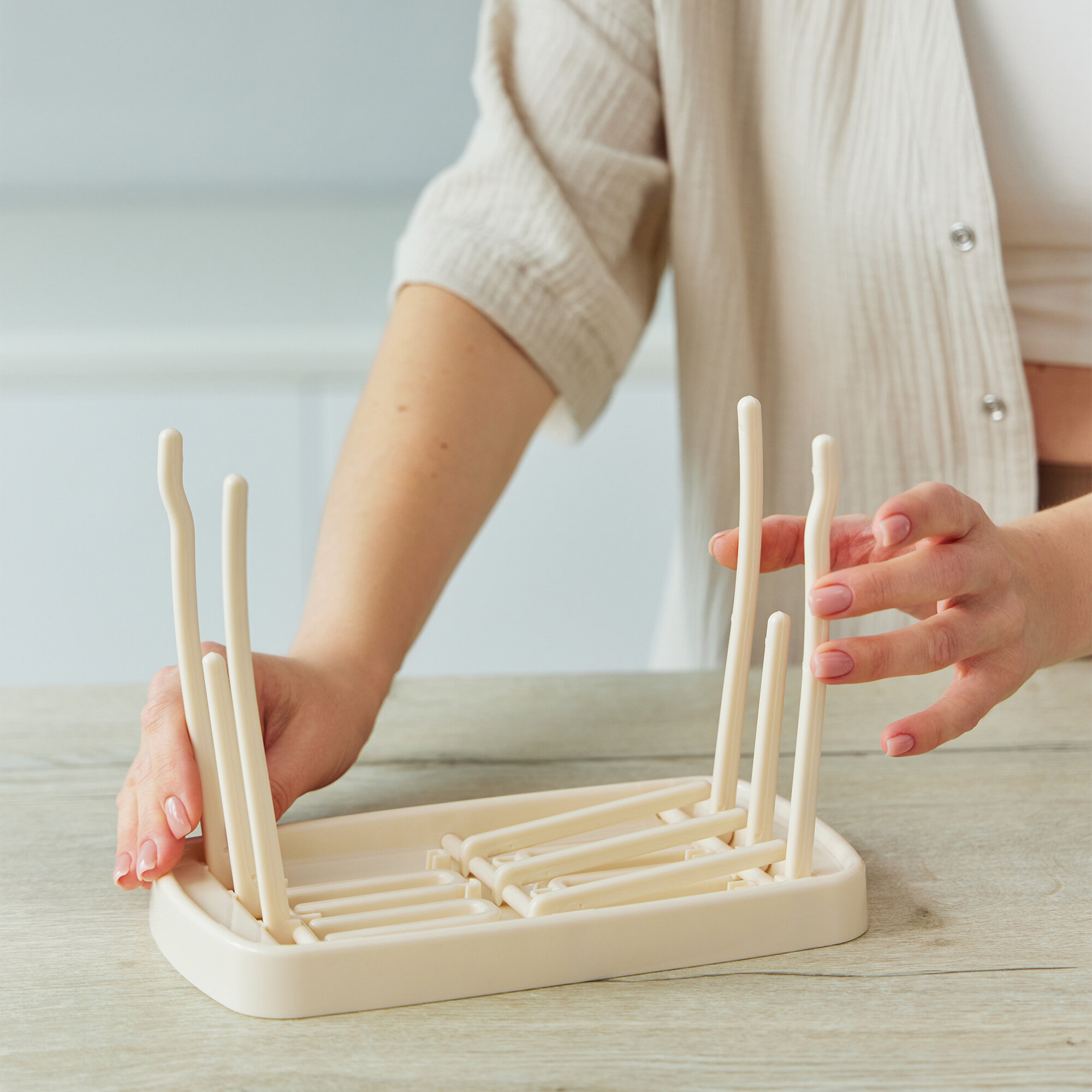 33010, Сушилка для бутылочек и сосок Happy Baby, подставка для посуды настольная, складная, компактная, кремовая