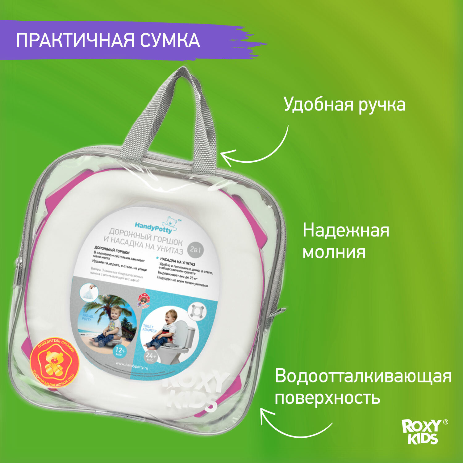 Горшок детский складной дорожный 2в1 для малышей HandyPotty ROXY-KIDS