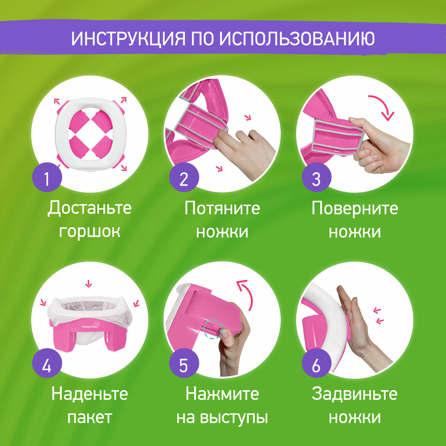 Дорожный горшок HandyPotty в фирменной сумке, цвет розовый