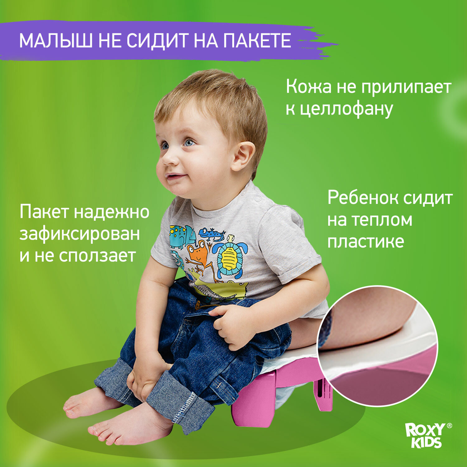 Горшок дорожный складной и насадка на унитаз Handy Potty от ROXY-KIDS с тремя пакетами, цвет фиолетовый