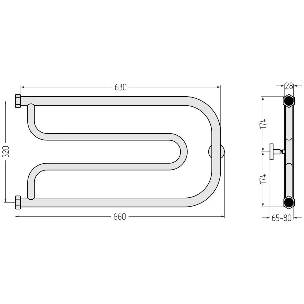 Сунержа Водяной полотенцесушитель Сунержа Гусли 320х650