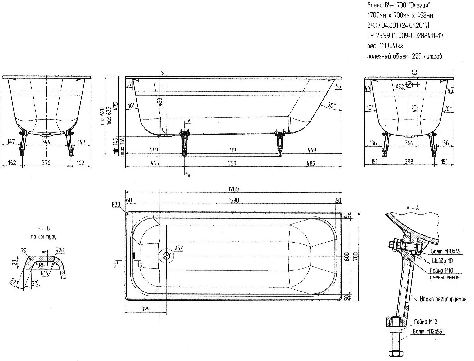 Чугунная ванна Универсал Элегия 170х70 интересное: