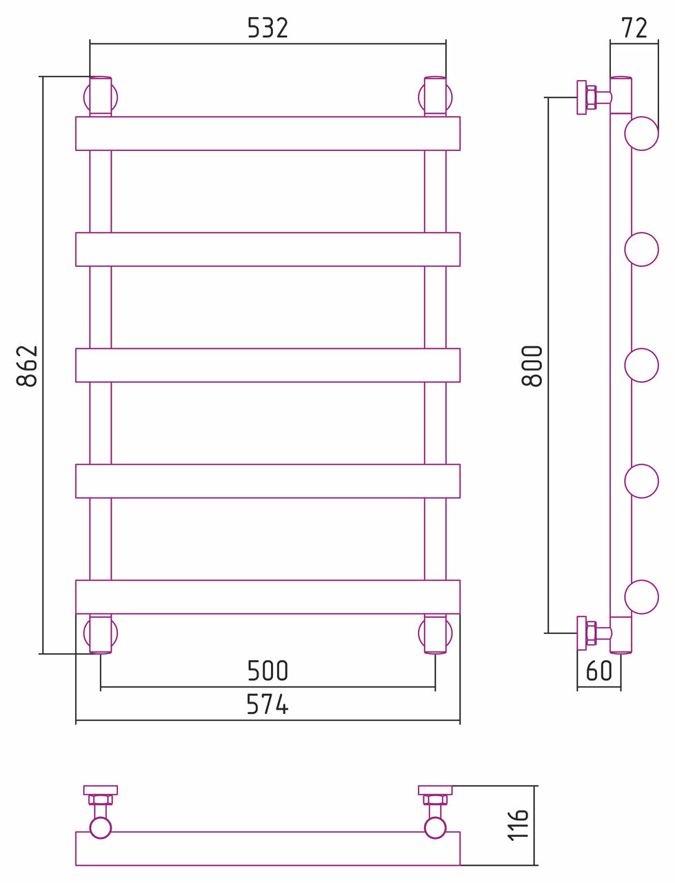 Водяной полотенцесушитель Aquanet Mauro(г2) 800x500