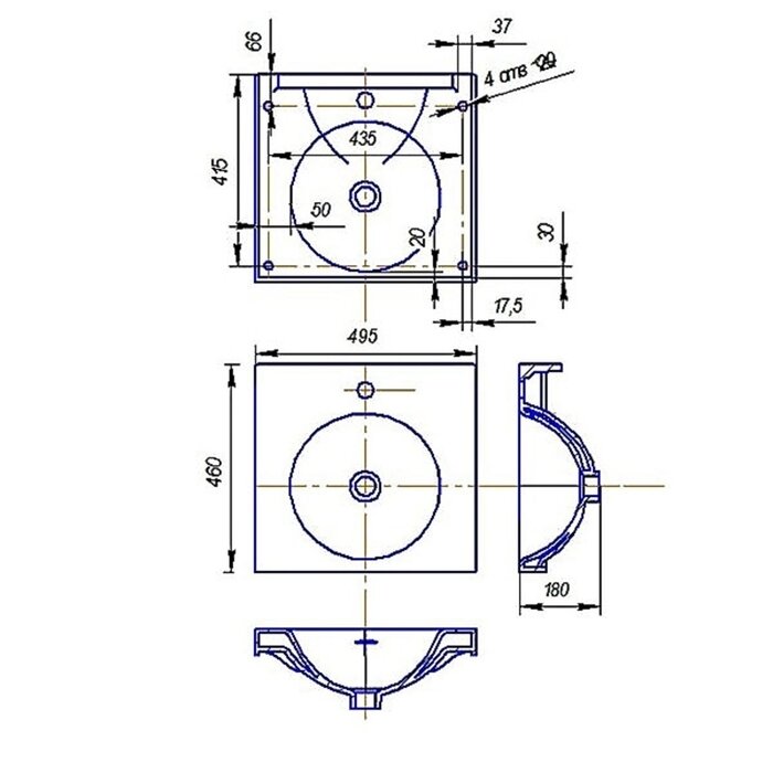 | Число размеченных отверстий под смеситель | отсутствуют |