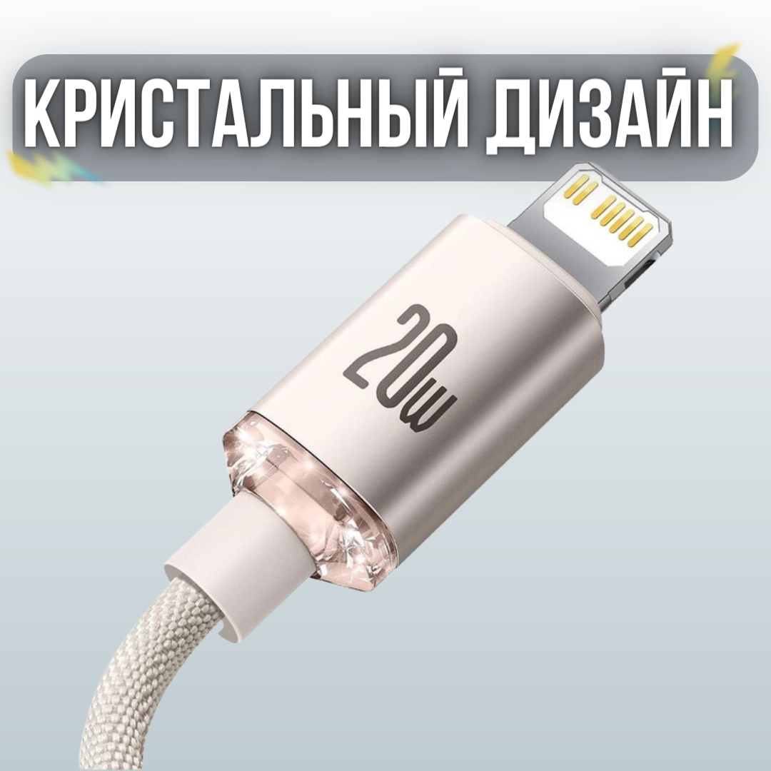СохранитьКабель BASEUS Crystal Shine Series USB-C->MFI с функцией быстрой зарядки 20W 2m Розовый интересное: