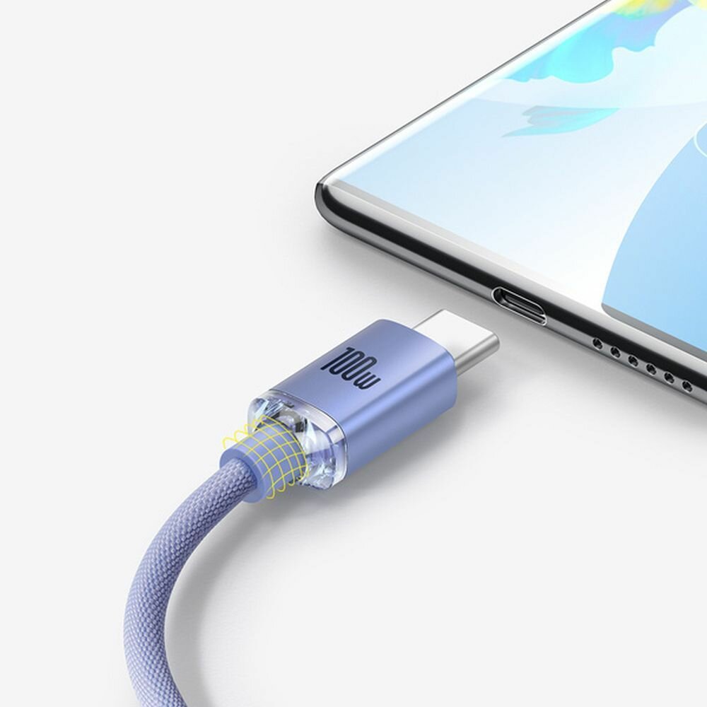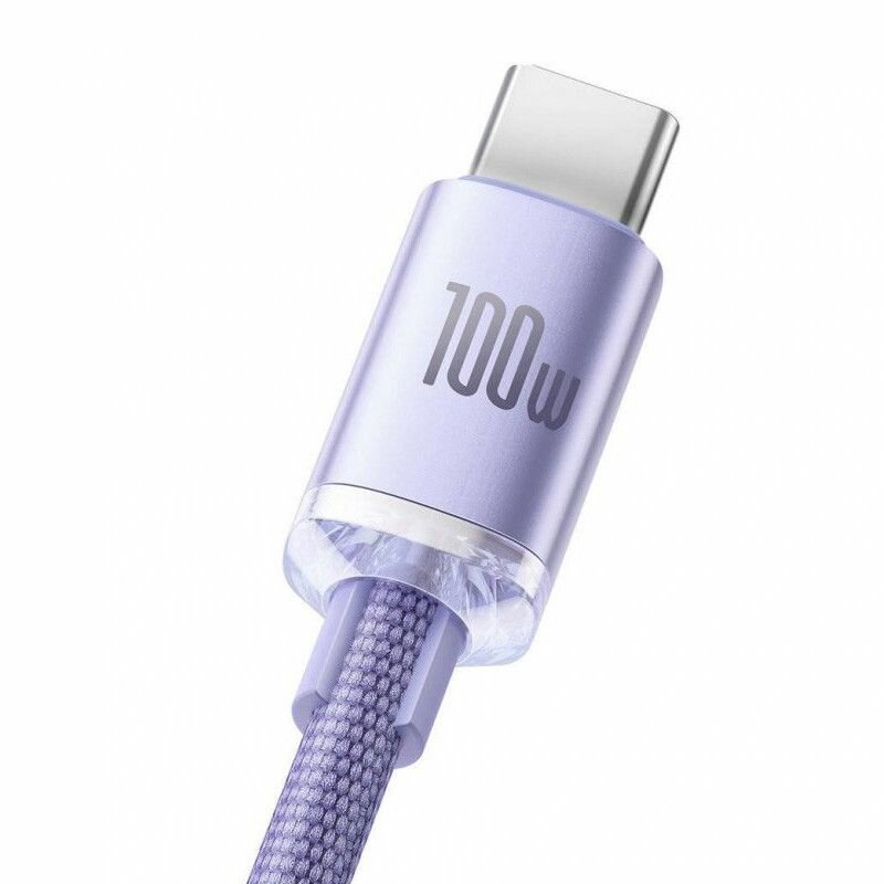 Кабель BASEUS Crystal Shine Series Fast Charging, Type-C - Type-C, 5A, 100W, 1.2 м, Фиолетовый