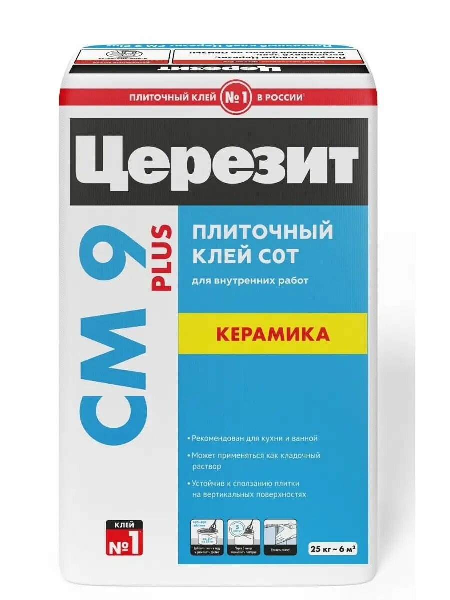 Клей СМ9 для плитки (внутренние работы), церезит - 25 кг. интересное:
