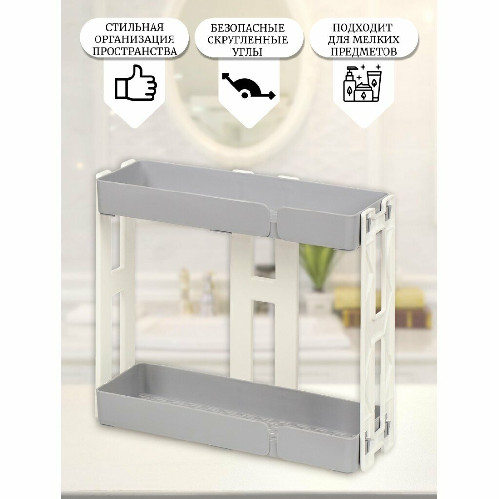 Купить Универсальная полка 6606, пластик, 2 секции, серый, Китай