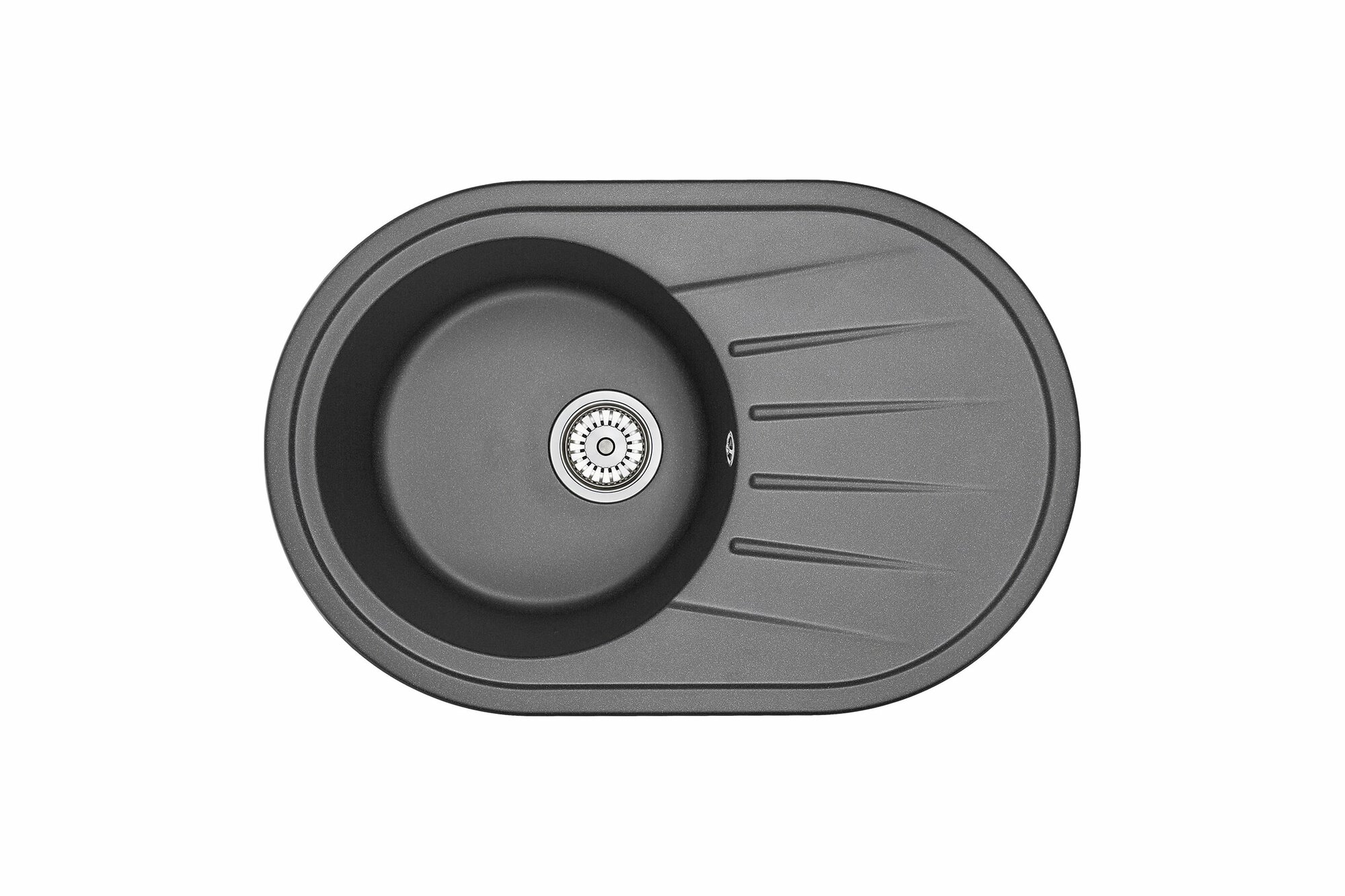 Кухонная мойка кварцевая Granula ST-7601 овальная с крылом, стандарт, чаша D 390, цвет черный (7601bl)