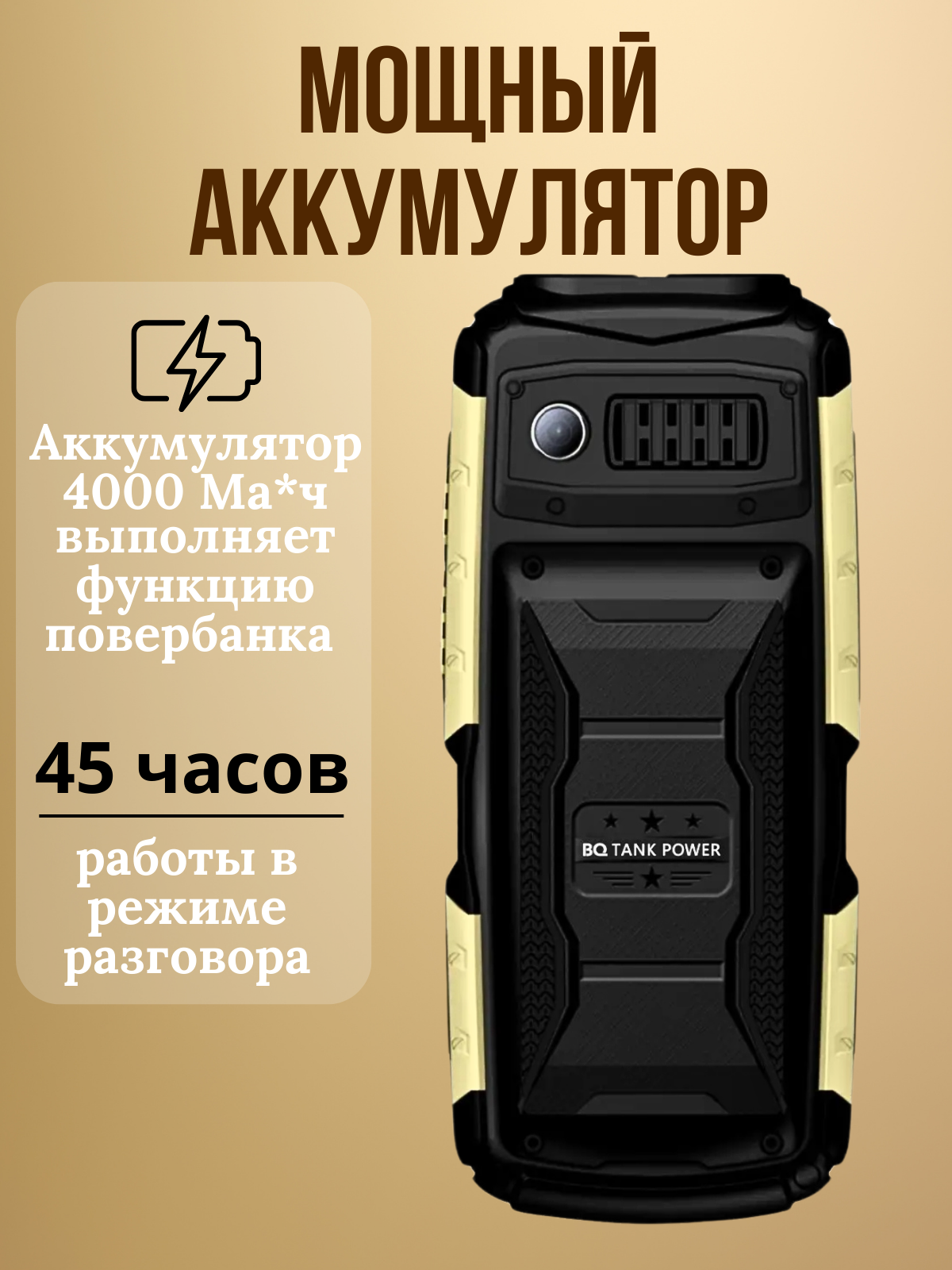 Мобильный телефон BQ BQ-2430 Tank Power 2.4", 4000 мА·ч, черный/золотистый