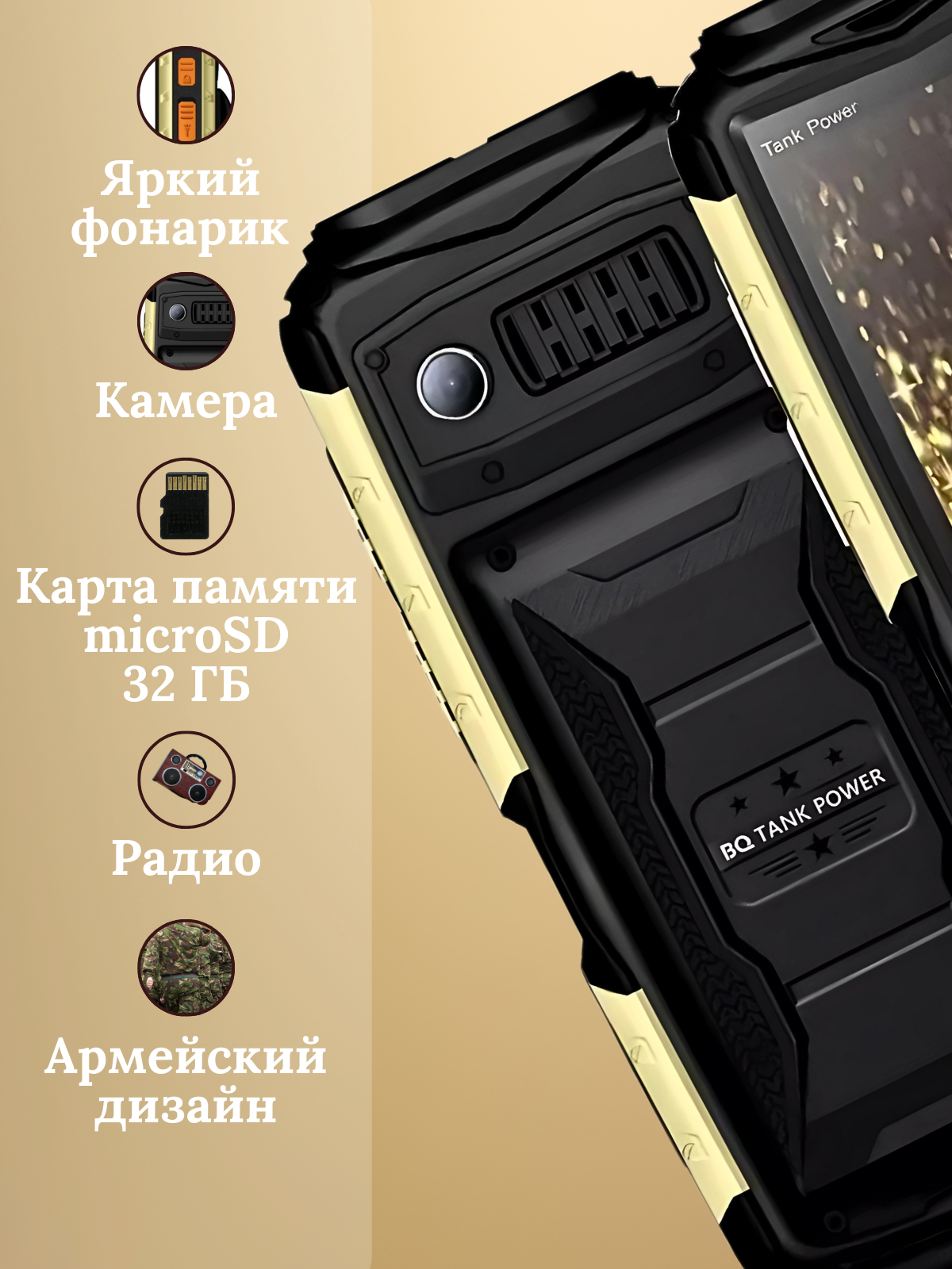 Защищенный кнопочный мобильный телефон с 2-мя СИМ-картами BQ 2430 Tank Power Camouflage+Gold
