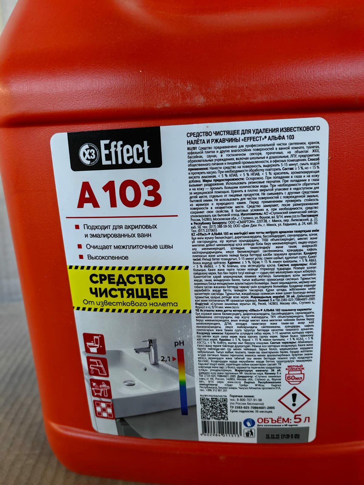 Ниже Вы можете прочитать отзывы на Профессиональное чистящее средство Effect A103 (ALFA 103) для удаления известкового налета и ржавчины, 5 л, ознакомится с подробными характеристиками, посмотреть интересные обзоры и фотографии на Профессиональное чистящее средство Effect A103 (ALFA 103) для удаления известкового налета и ржавчины, 5 л.