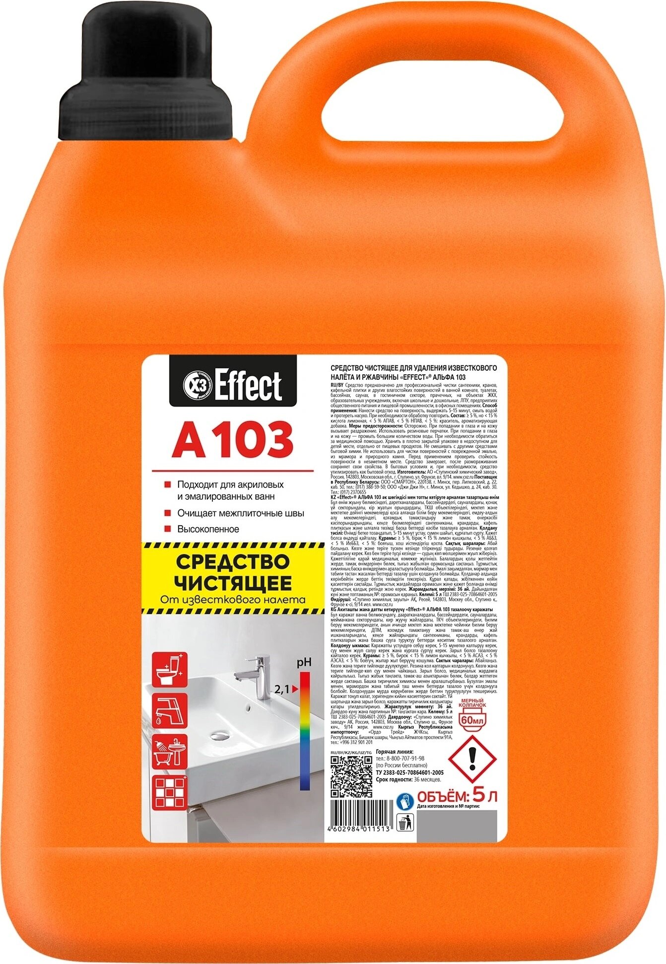 Промышленная химия Effect Alfa 103, 5л, для удаления известкового налета и ржавчины (10718)