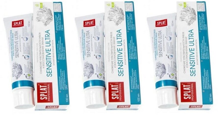 Купить Зубная паста Splat Professional Sensitive Ultra, снижение кровотоивости, для чувствительных зубов, без фтора, 100 мл./ 3 штуки