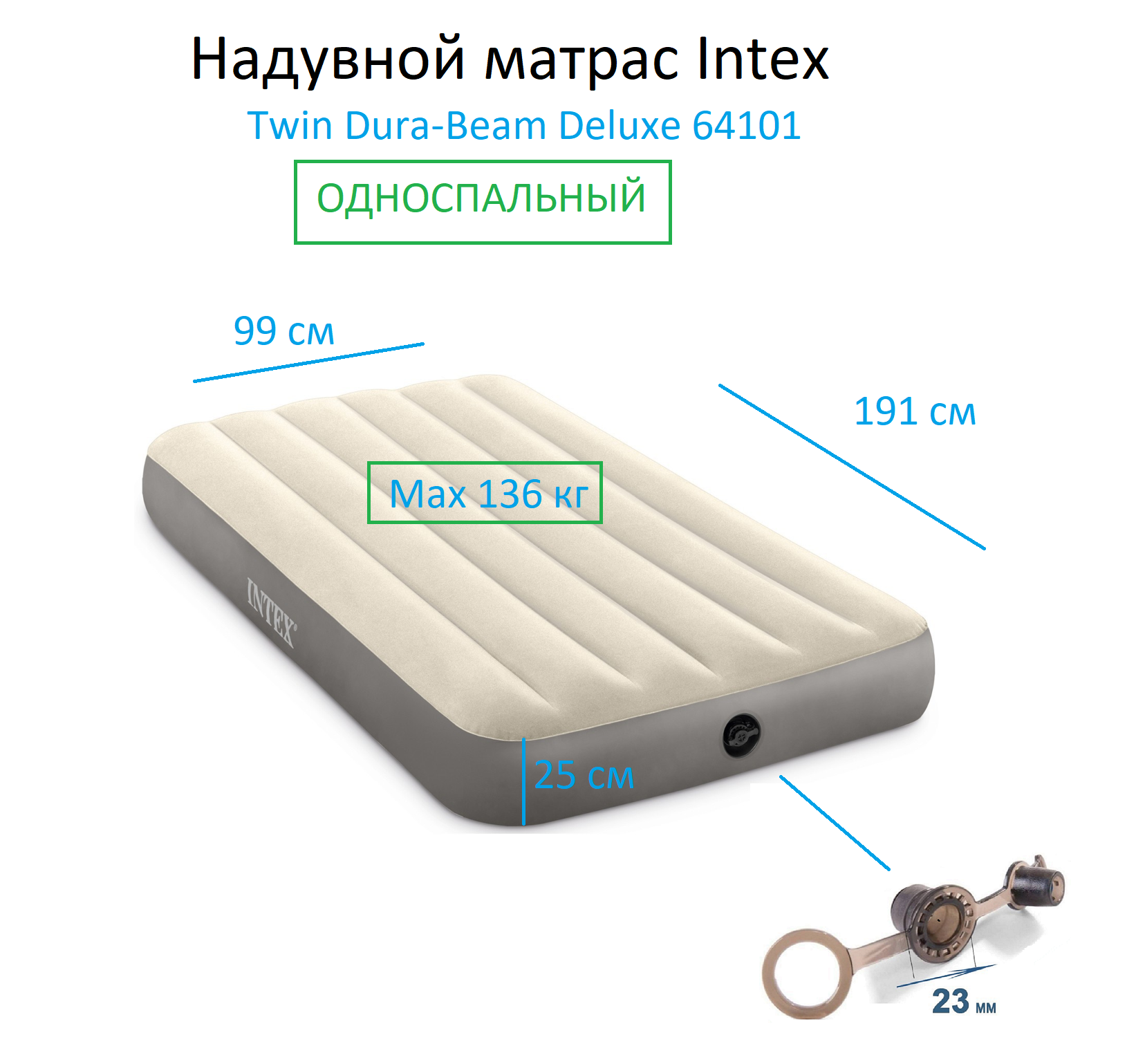 Кровать надувная INTEX 64101 Deluxe Twin, 99 х 191 х 25 см
