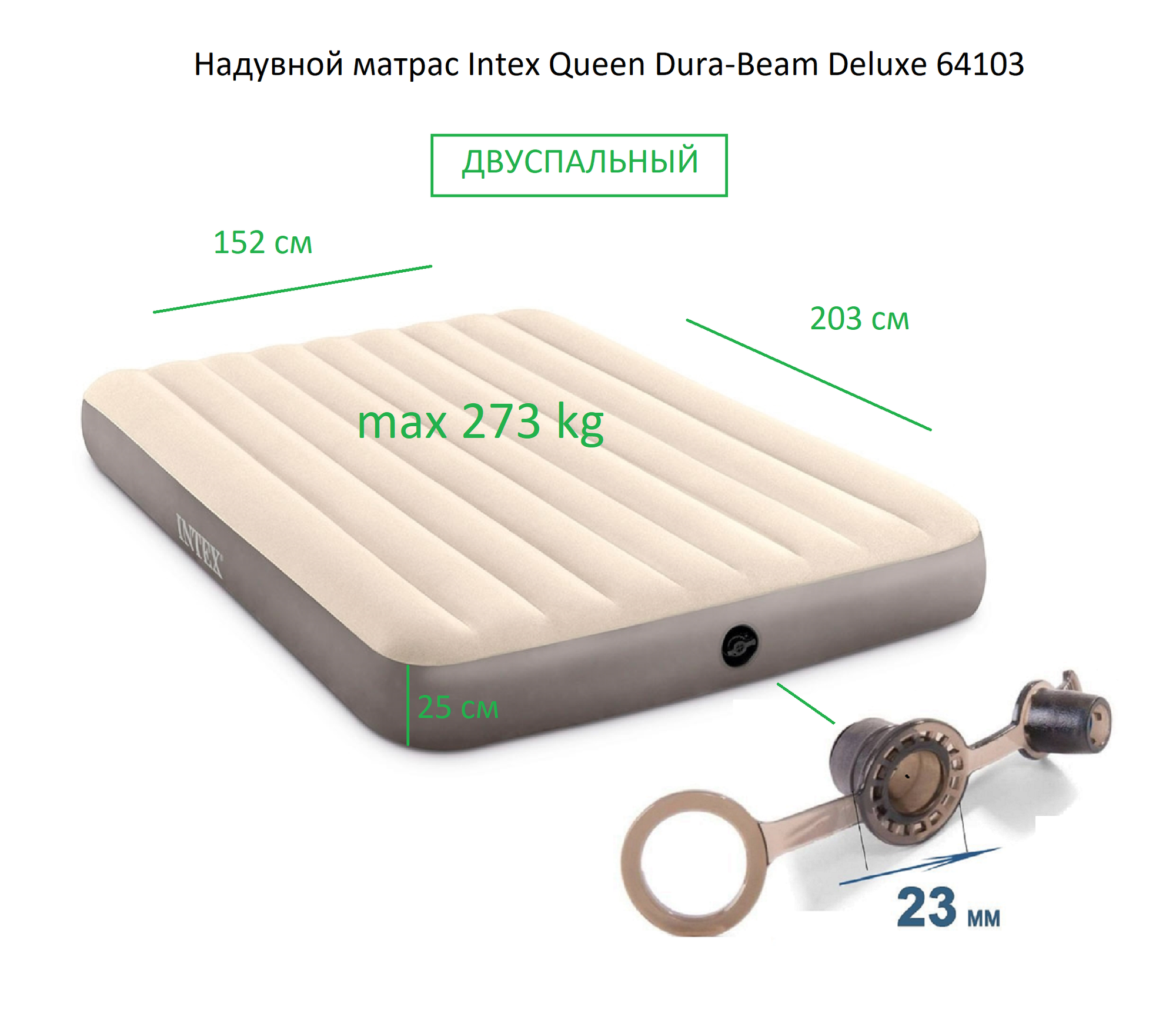 Купить Надувной двуспальный матрас Intex Deluxe Single-High 152 x 203 x 25 см, 64103