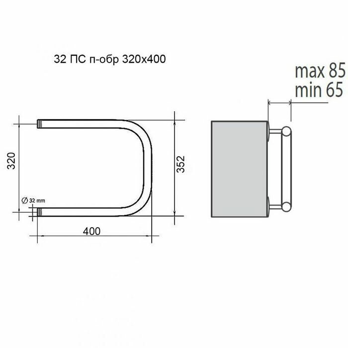 Полотенцесушитель П-образный 32 ПС п-обр, 320мм*400мм, Terminus (Россия), арт Побр-320400