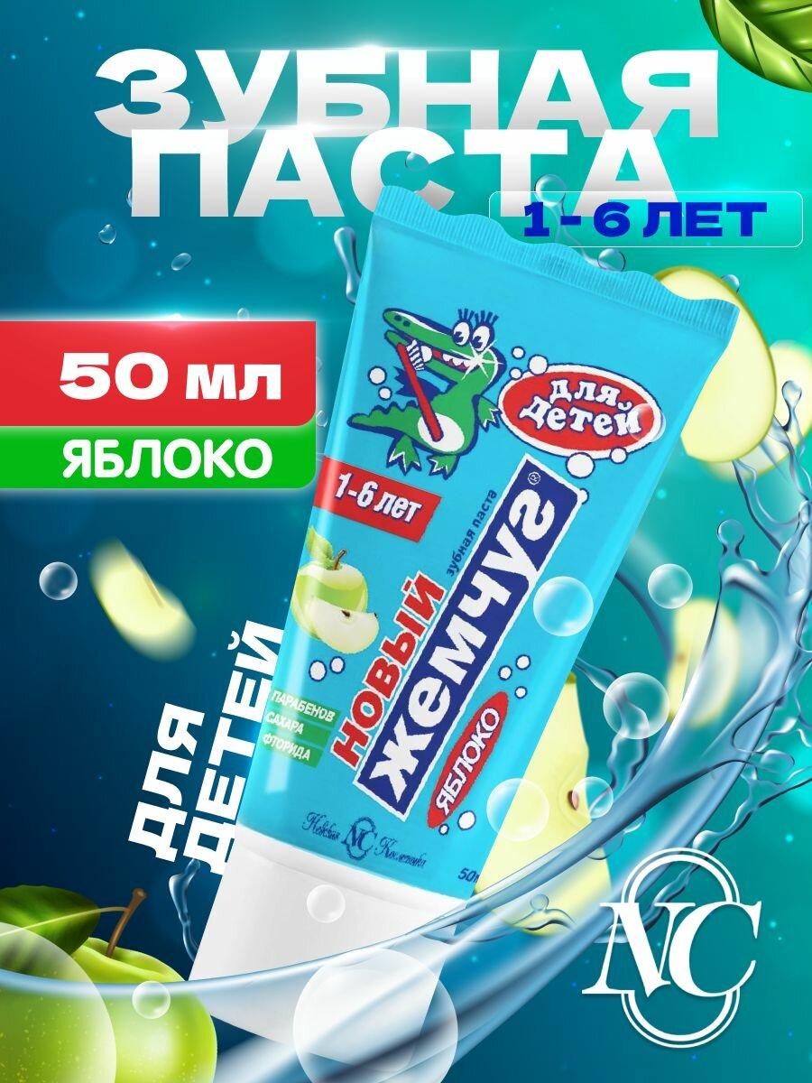 Зубная паста Новый Жемчуг Яблоко, детская, 1-6 лет, 50 мл