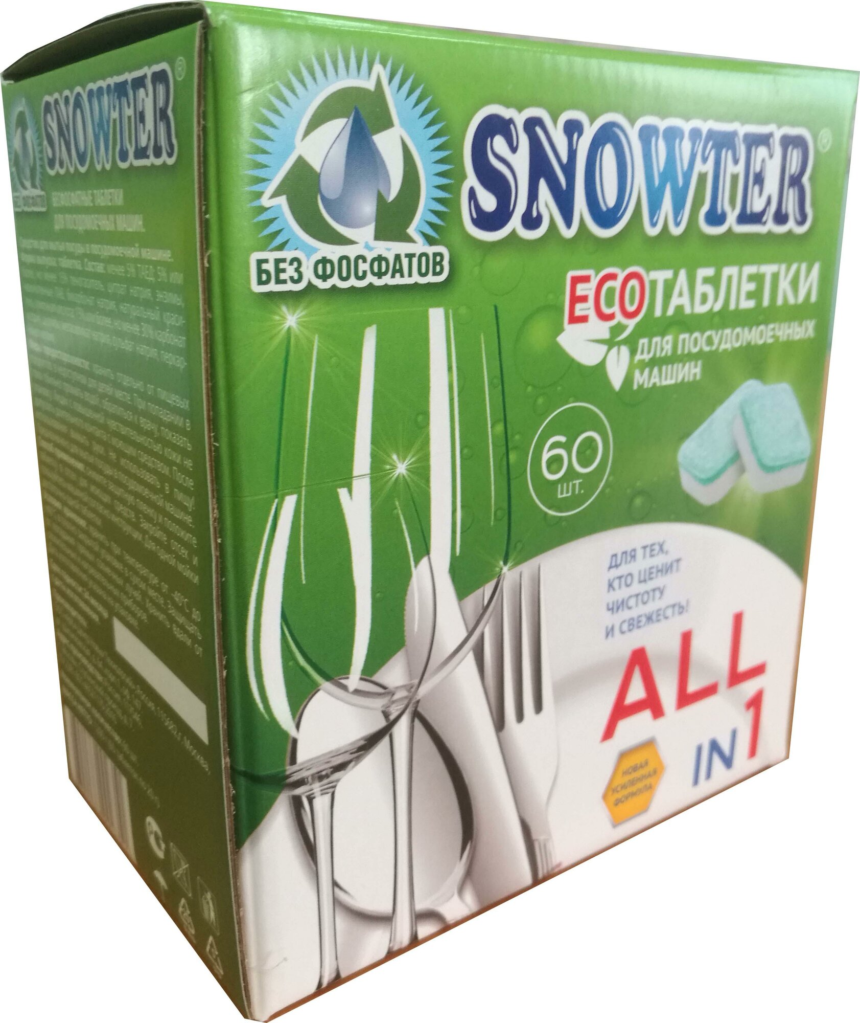 Таблетки для посудомоечных машин SNOWTER ECO All in 1 без фосфатов (60шт).