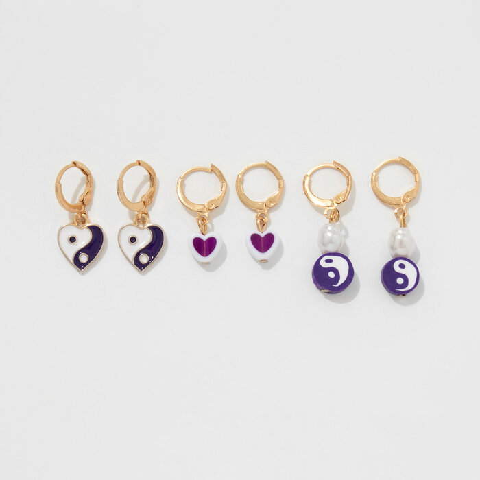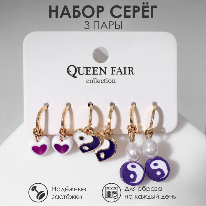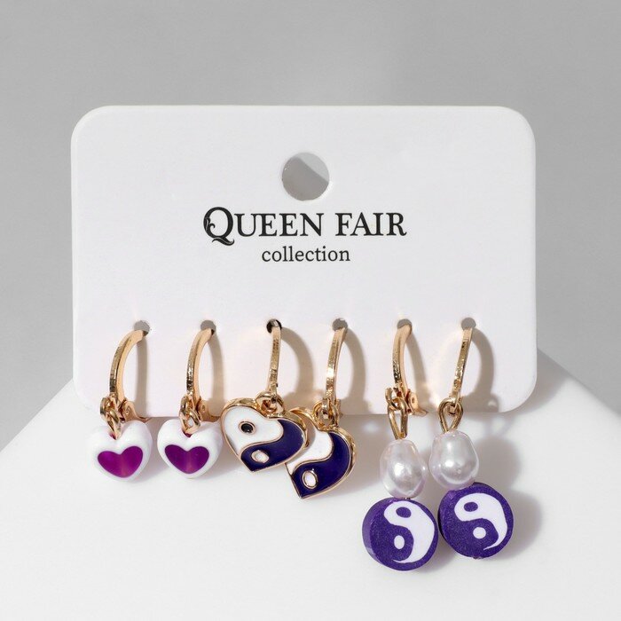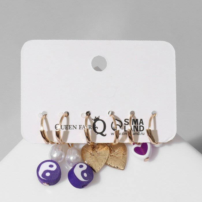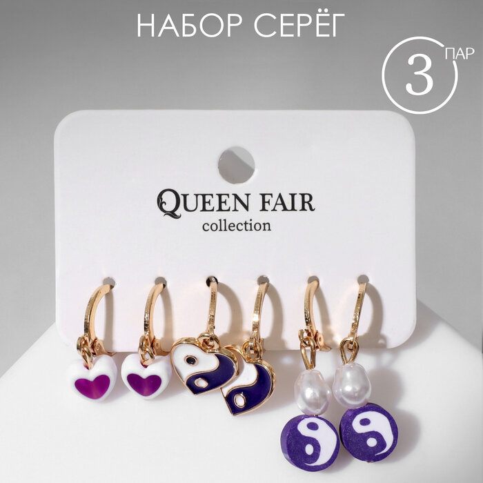 Набор серег Queen fair 3 пары "Тинейдж" цвет бело-фиолетовый в золоте интересное: