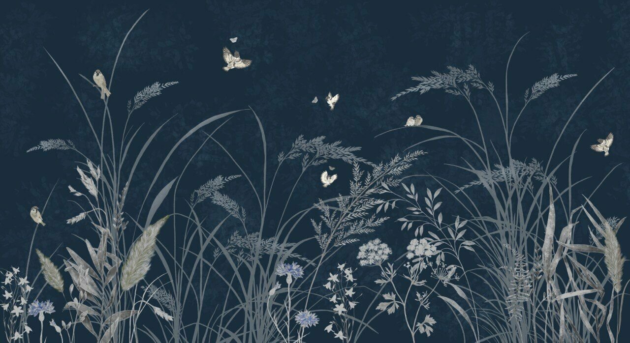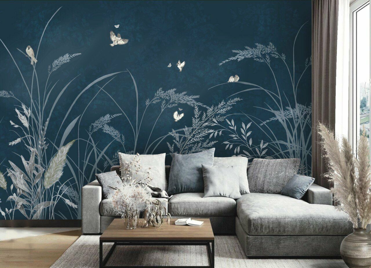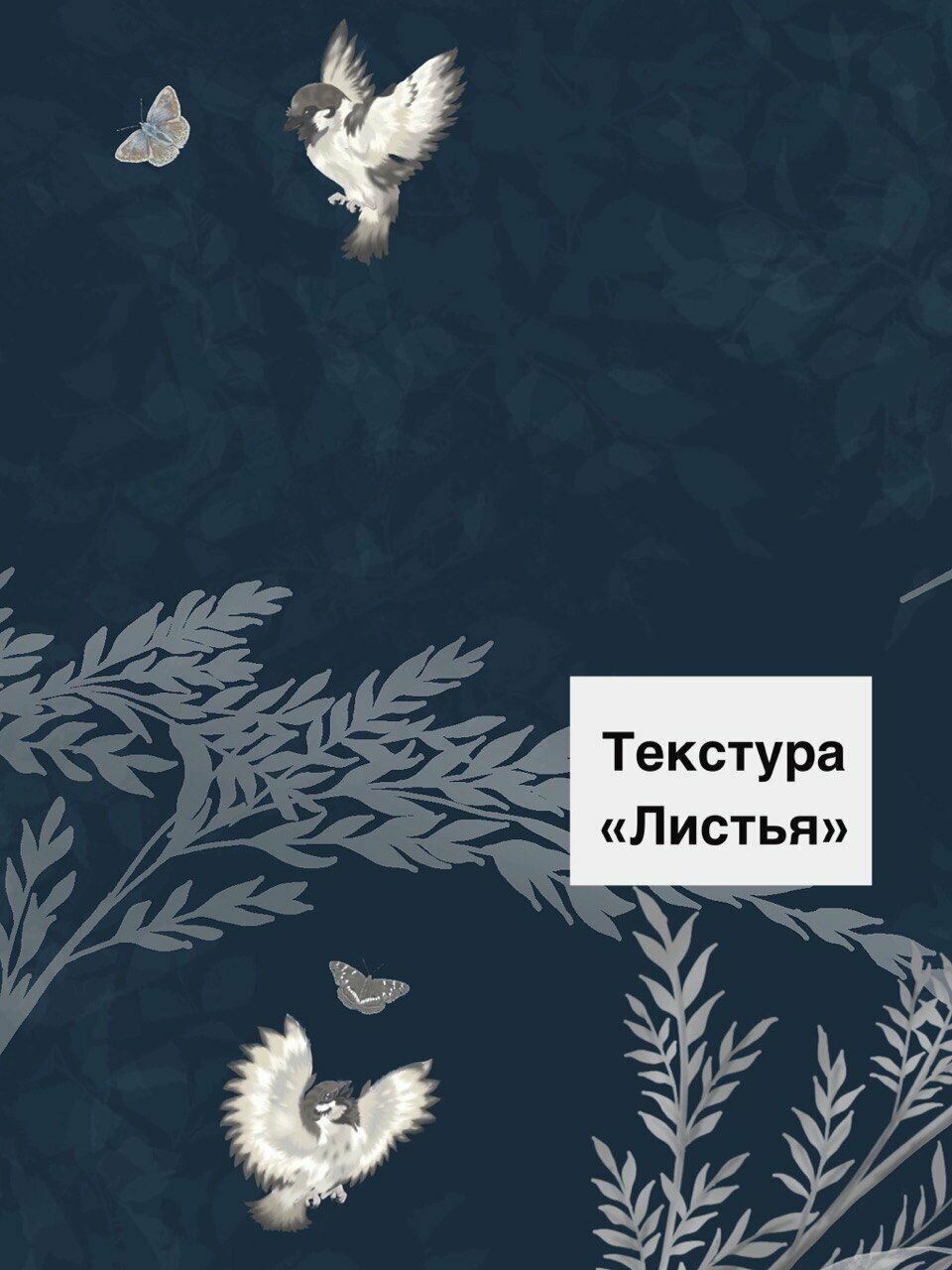 СохранитьОбои бесшовные Летний сад воробьи синий текстура листья (ширина 2750мм х длина 3000мм) интересное: