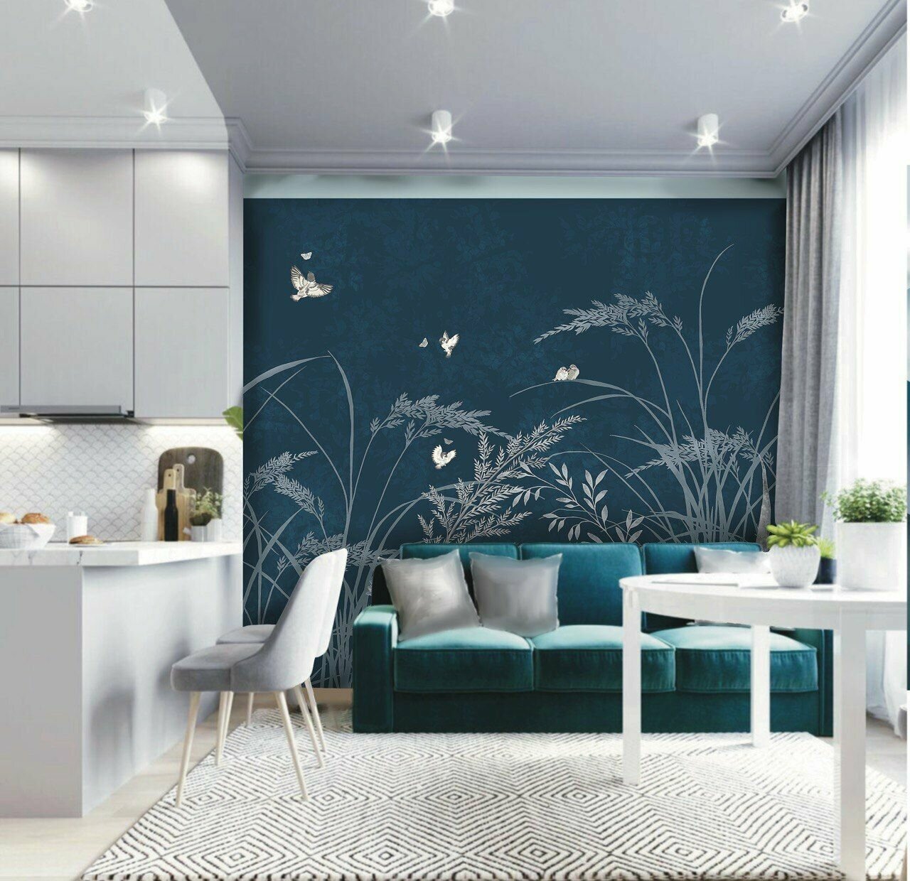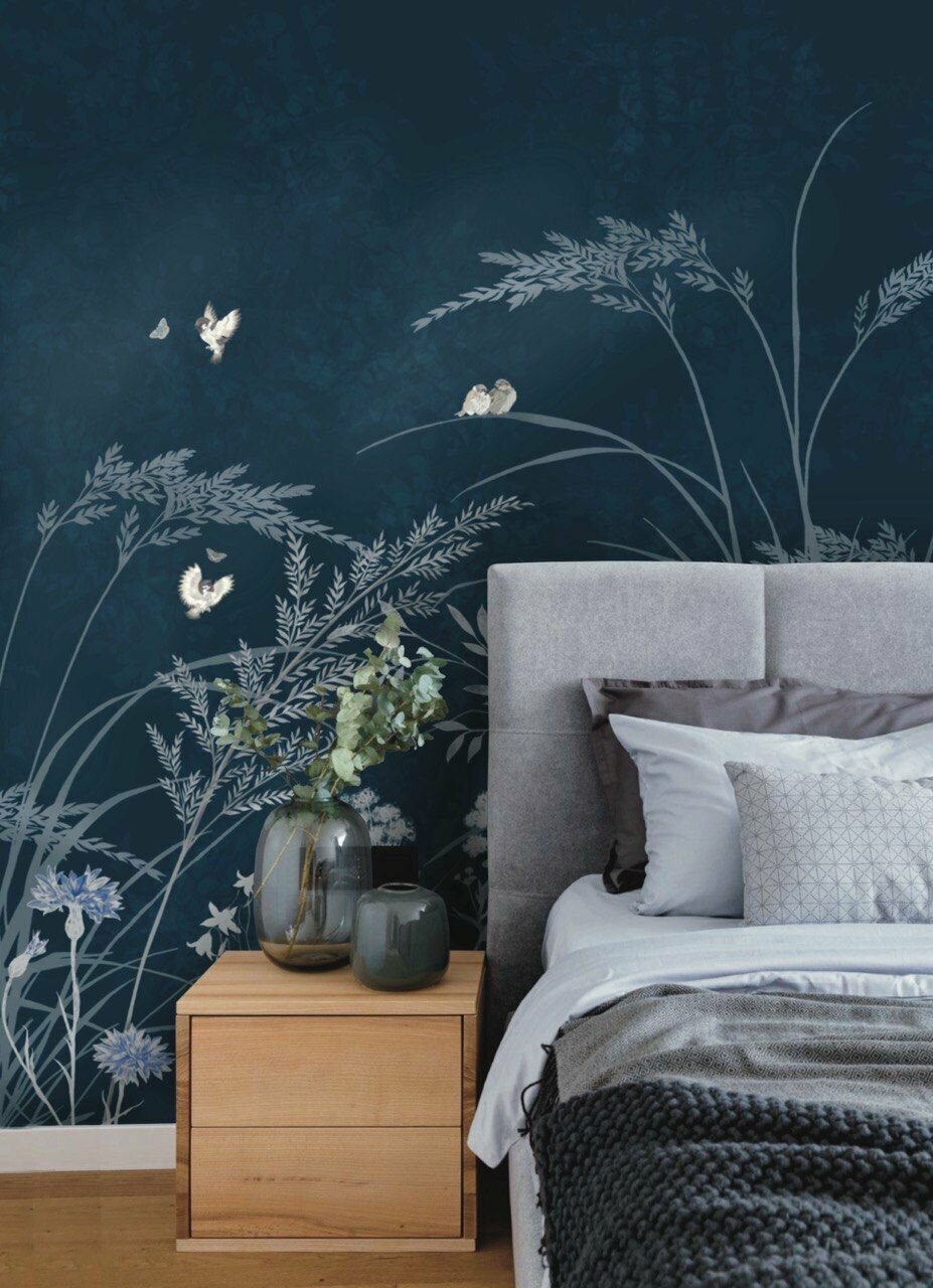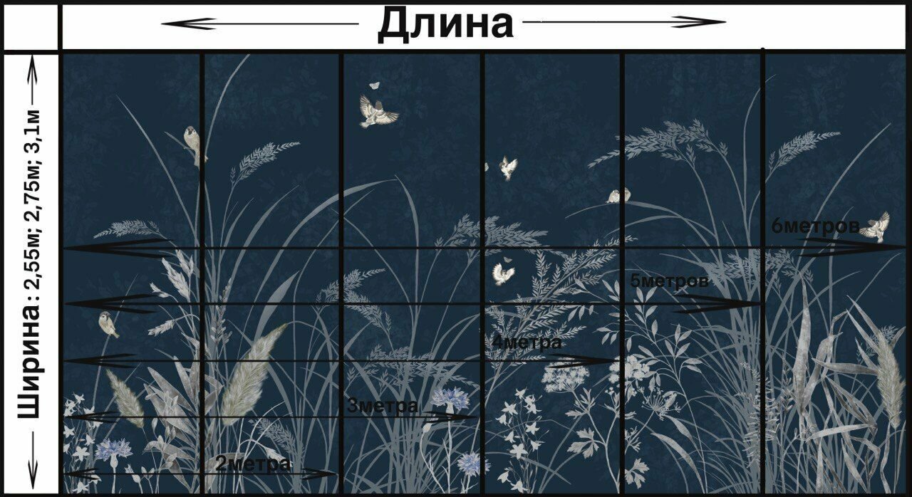 СохранитьОбои бесшовные Летний сад воробьи синий текстура листья (ширина 2750мм х длина 3000мм) интересное: