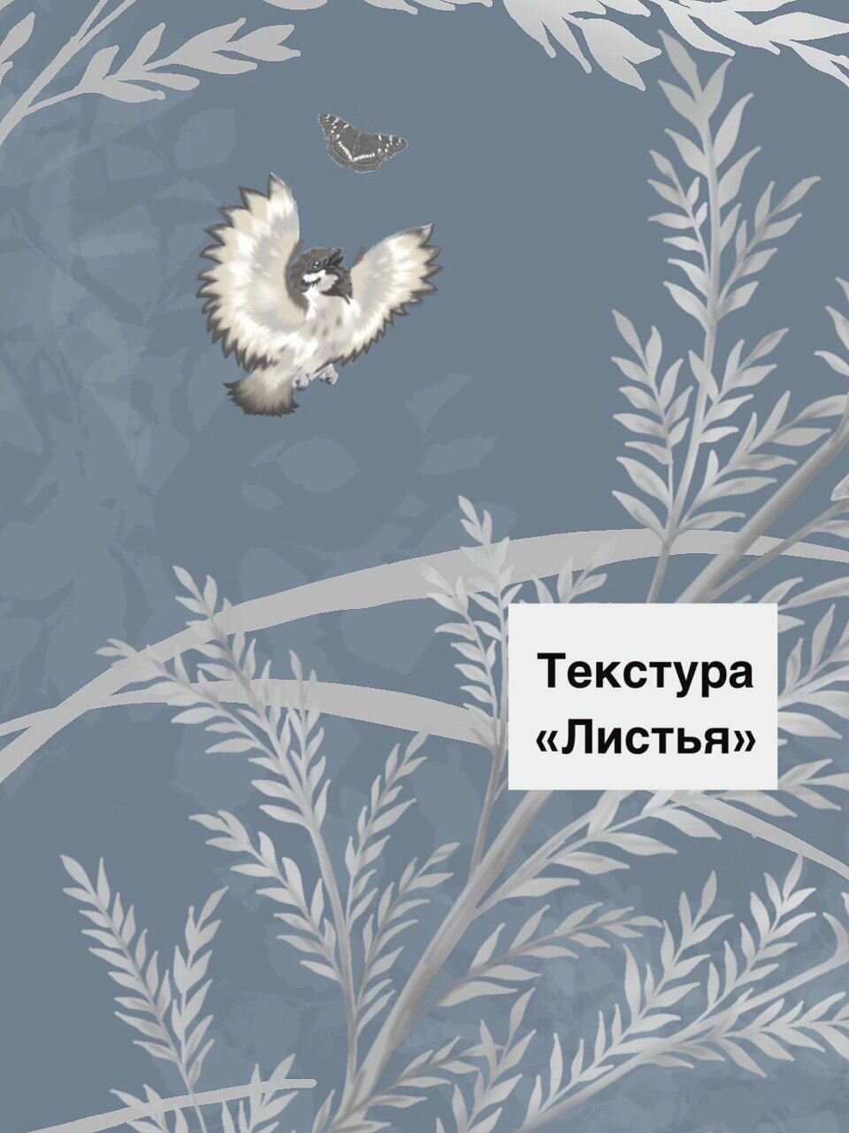 СохранитьОбои бесшовные Летний сад воробьи серо-голубые текстура листья (ширина 2750мм х длина 3000мм) интересное: