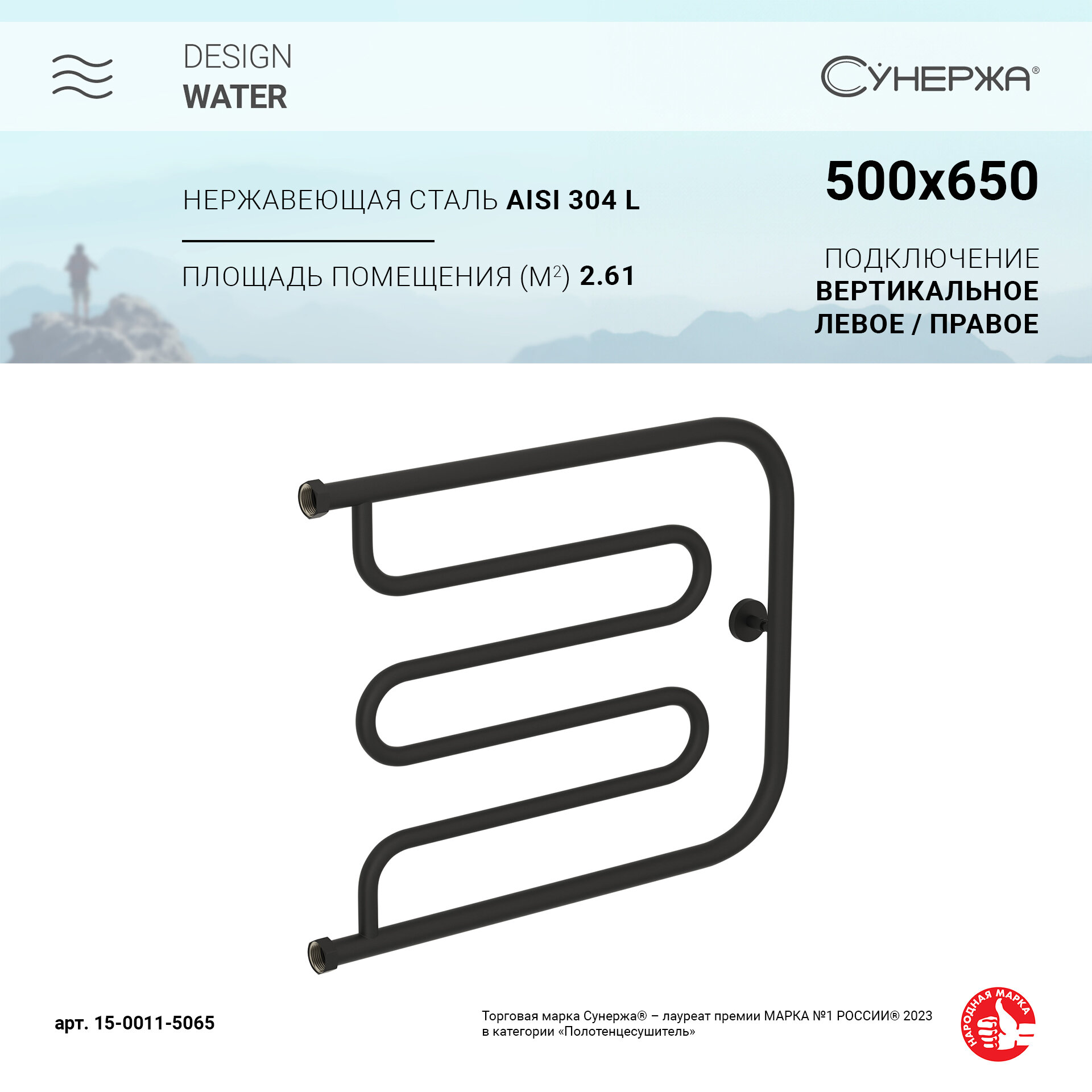 Полотенцесушитель водяной Сунержа Элегия+ 1000х500 Матовый черный 31-0205-1050