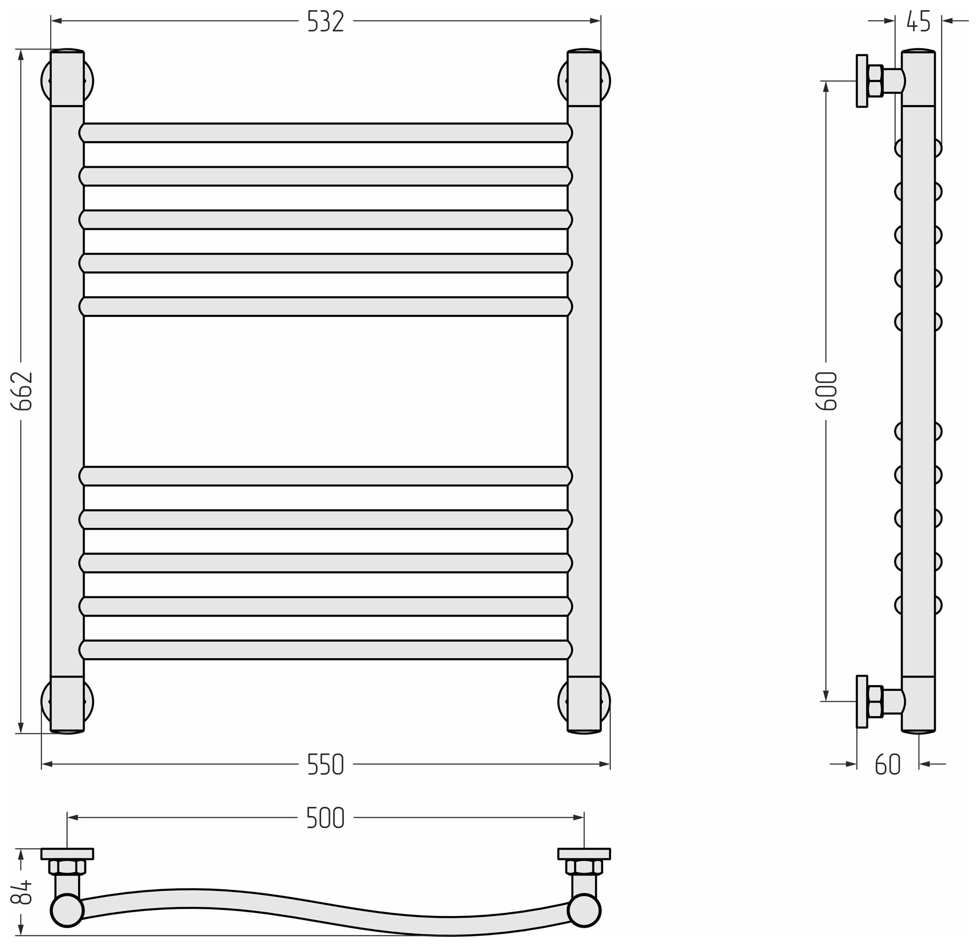 Полотенцесушитель водяной Сунержа Богема L 600х900 Без покрытия