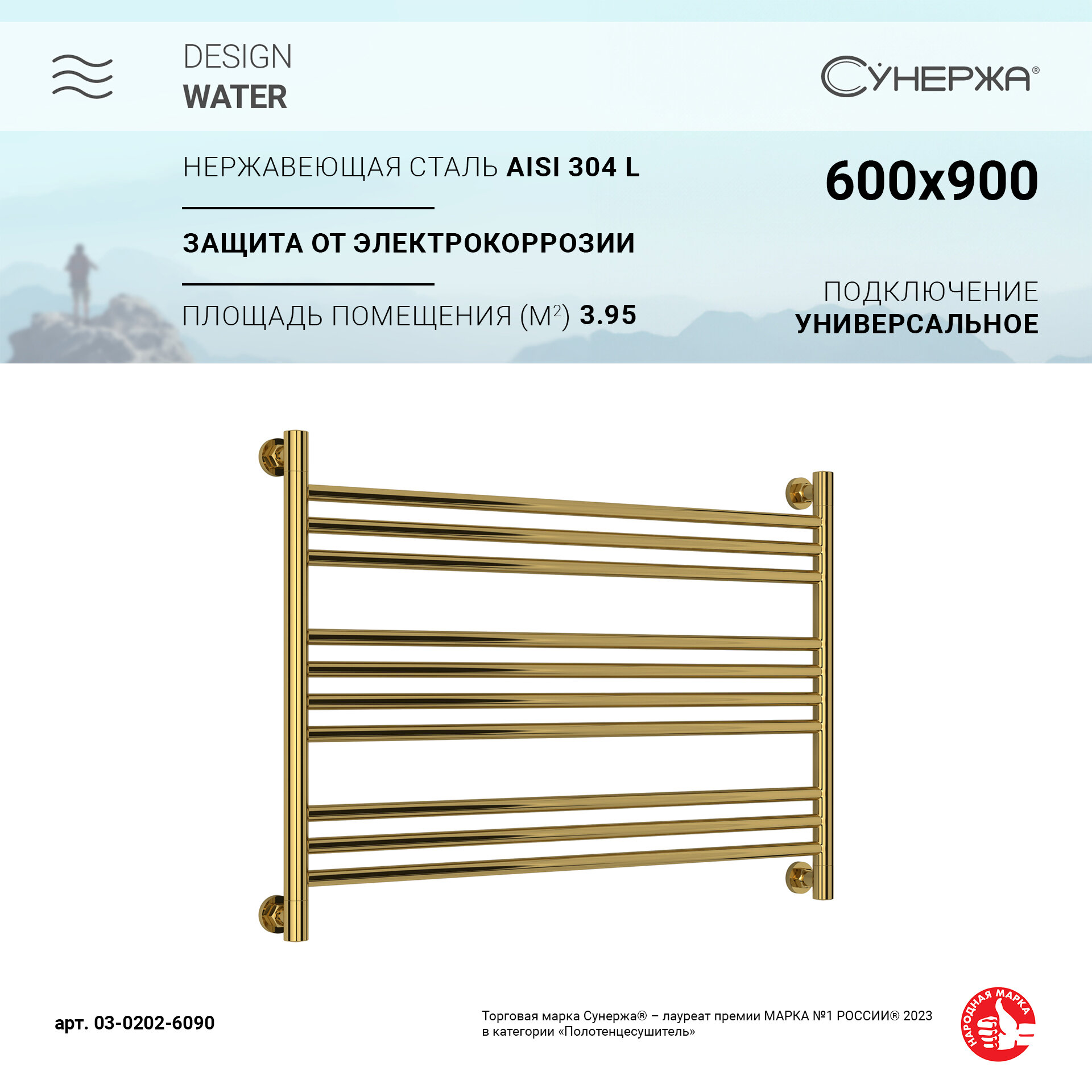 Купить Полотенцесушитель водяной 600x900 золотой Сунержа Богема L 03-0202-6090