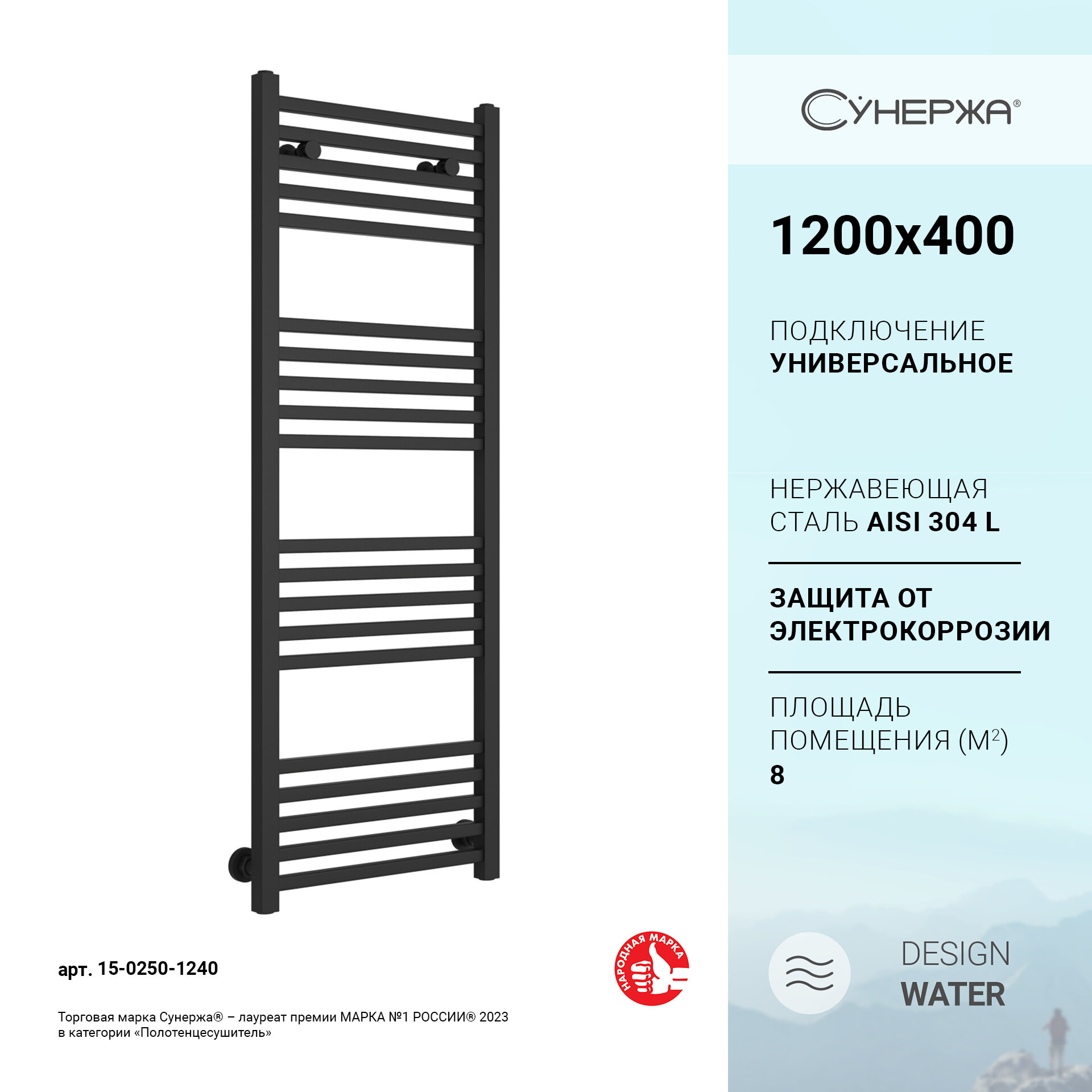 Полотенцесушитель водяной Сунержа Модус 1200х600 Матовый чёрный
