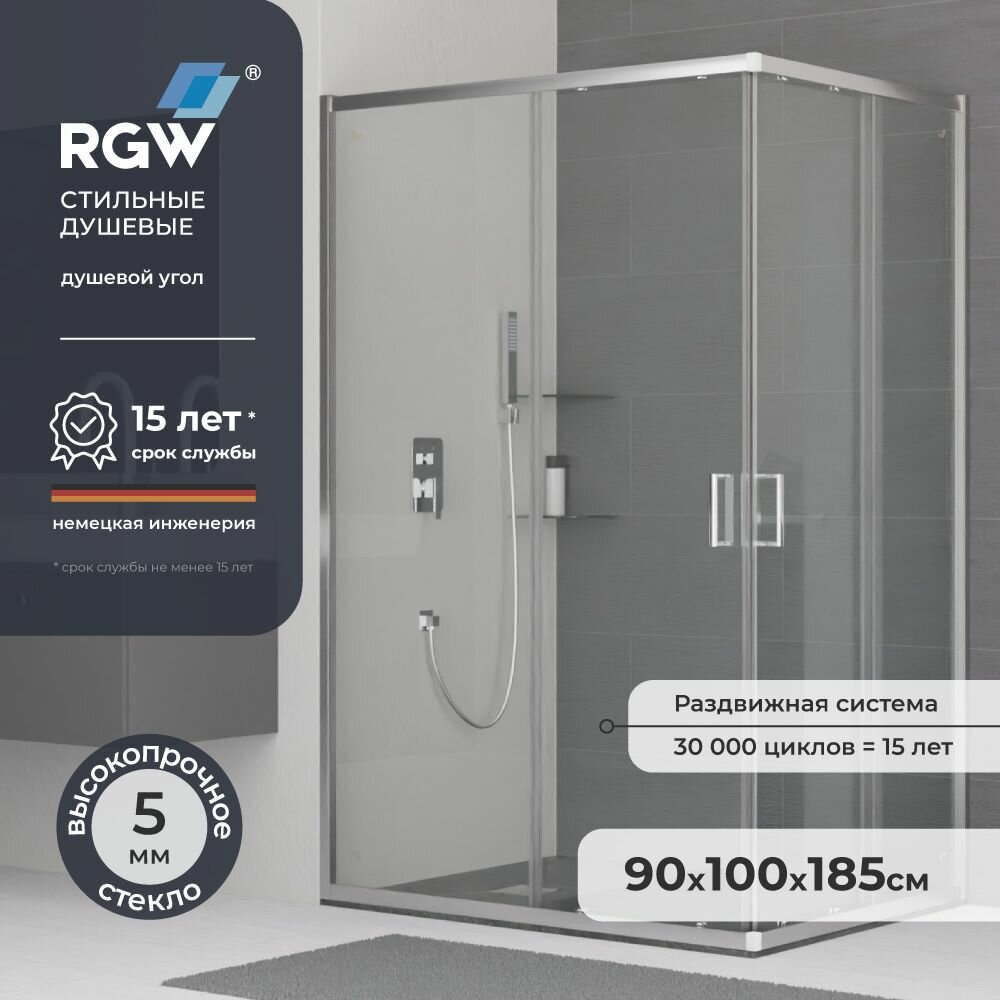 Душевой уголок RGW Passage 90 х 100 х 190 см PA-245 прямоугольный, хром цвет, прозрачное стекло 6 мм, EasyClean (410824590-11)