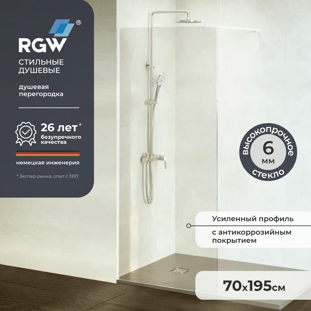 Душевая перегородка RGW Walk In 70x195 WA-010-W стекло прозрачное, профиль белый