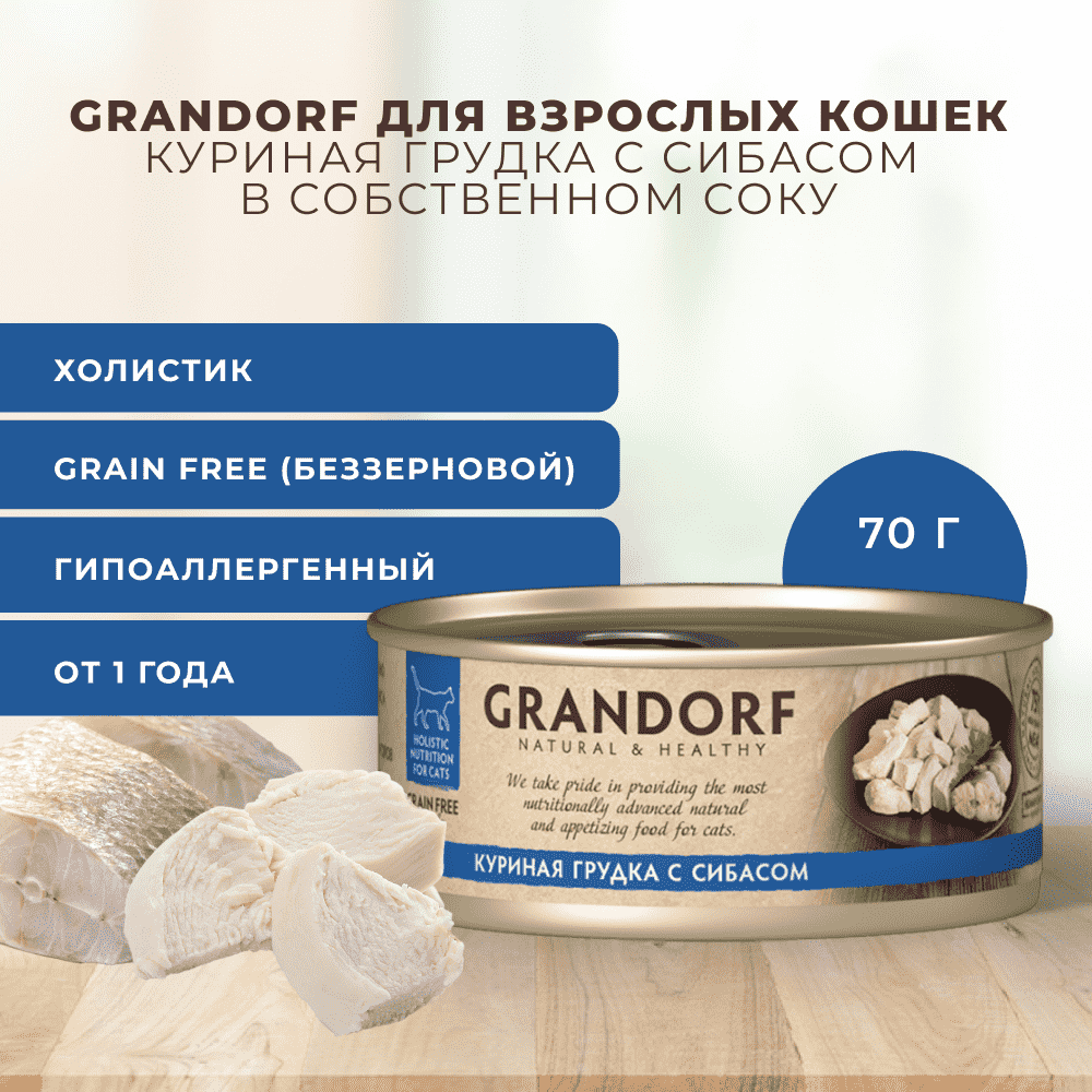 Консервы Grandorf для кошек: куриная грудка с сибасом / 70г х 6шт