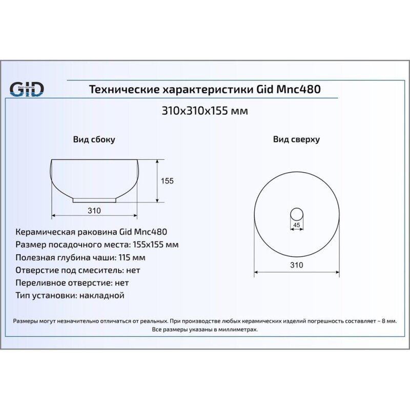 Накладная раковина для ванной Gid Mnc480 с донным клапаном