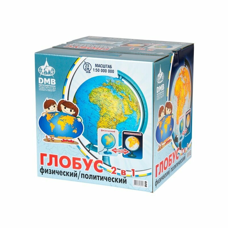 Глобус DMB физический/политический диаметр 250 мм, с подсветкой (по лицензии ГУП ПКО Картография) (451331) интересное:
