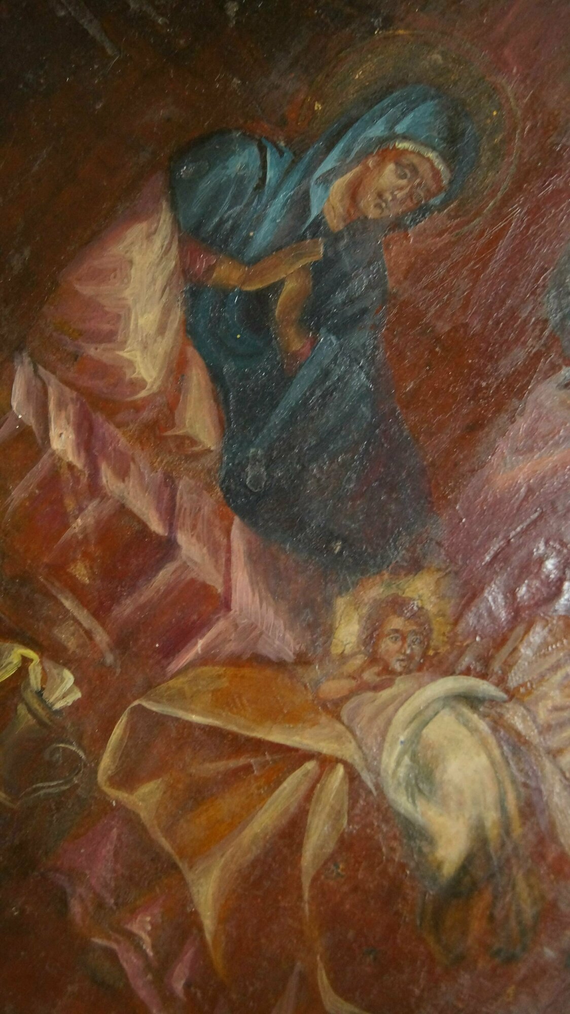 Антикварная огромная старинная храмовая икона "Рождество Пр.Богородицы" редкой формы. Масло на доске,письмо,темпера. Российская Империя,19 век. интересное: