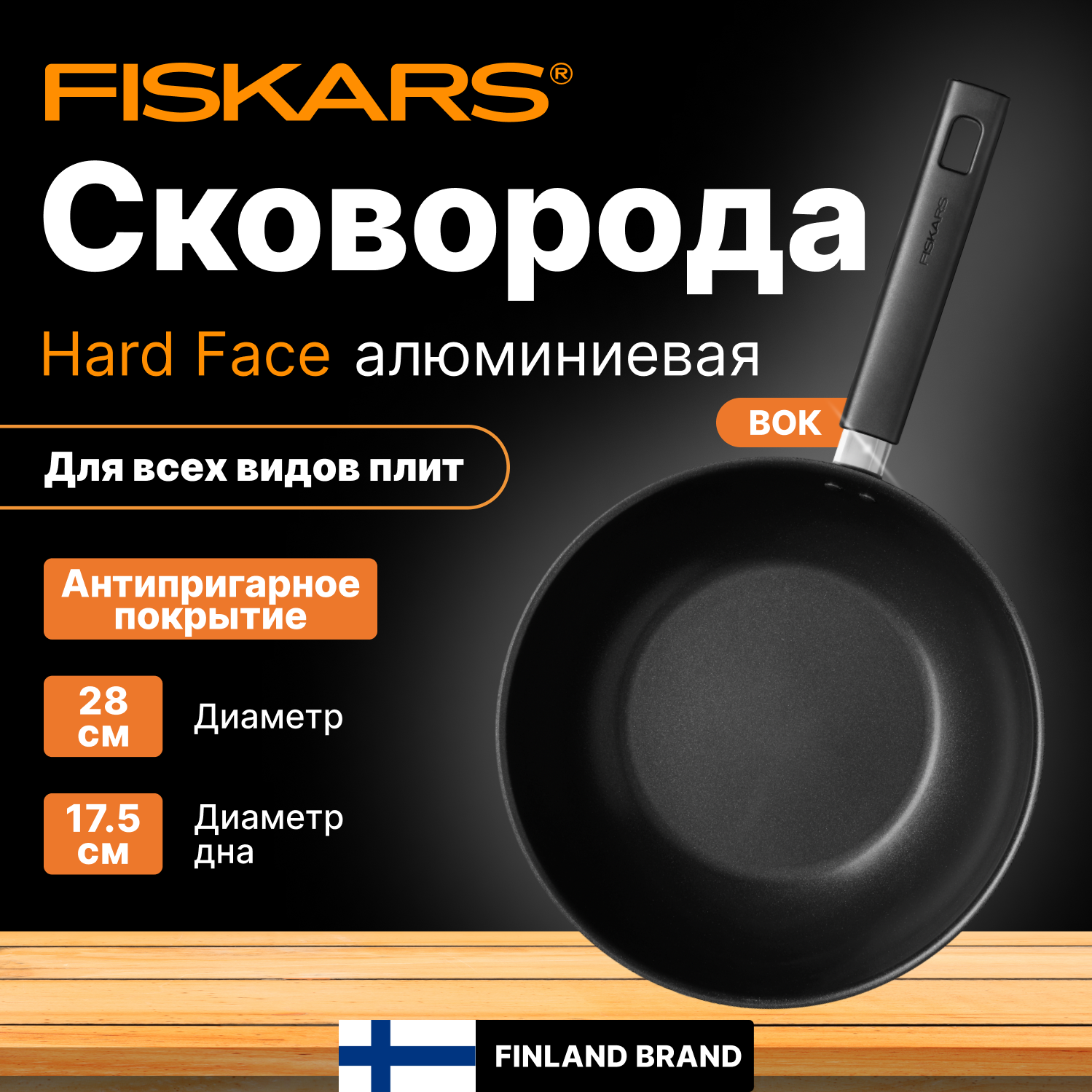 Сковорода ВОК (WOK) Fiskars Hard Face 1052233, 28см, черный, (без крышки)